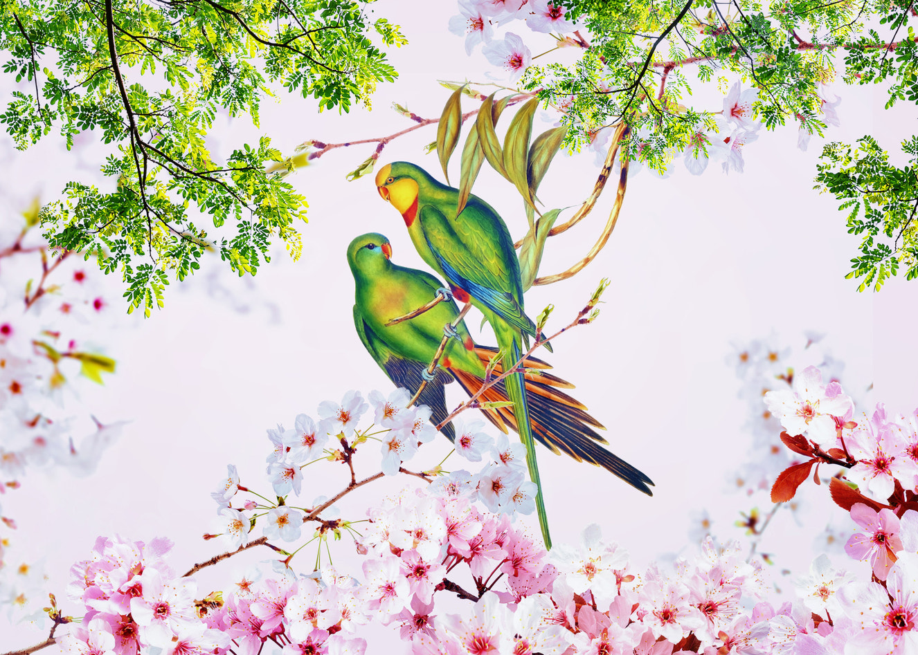 Bewitching flora wacky wall, Botanical Birds wallpaper for walls.