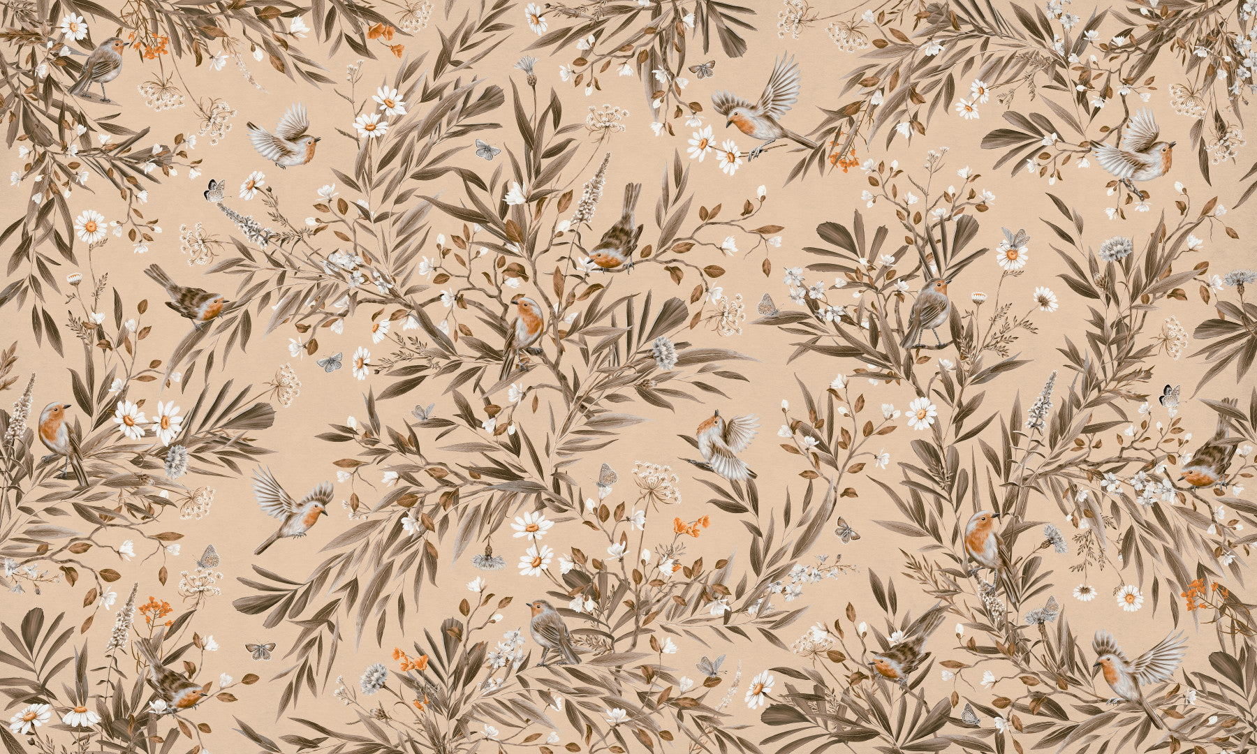 Charming bird motif on the appealing Botanical Birdsong Wall Mural print.
