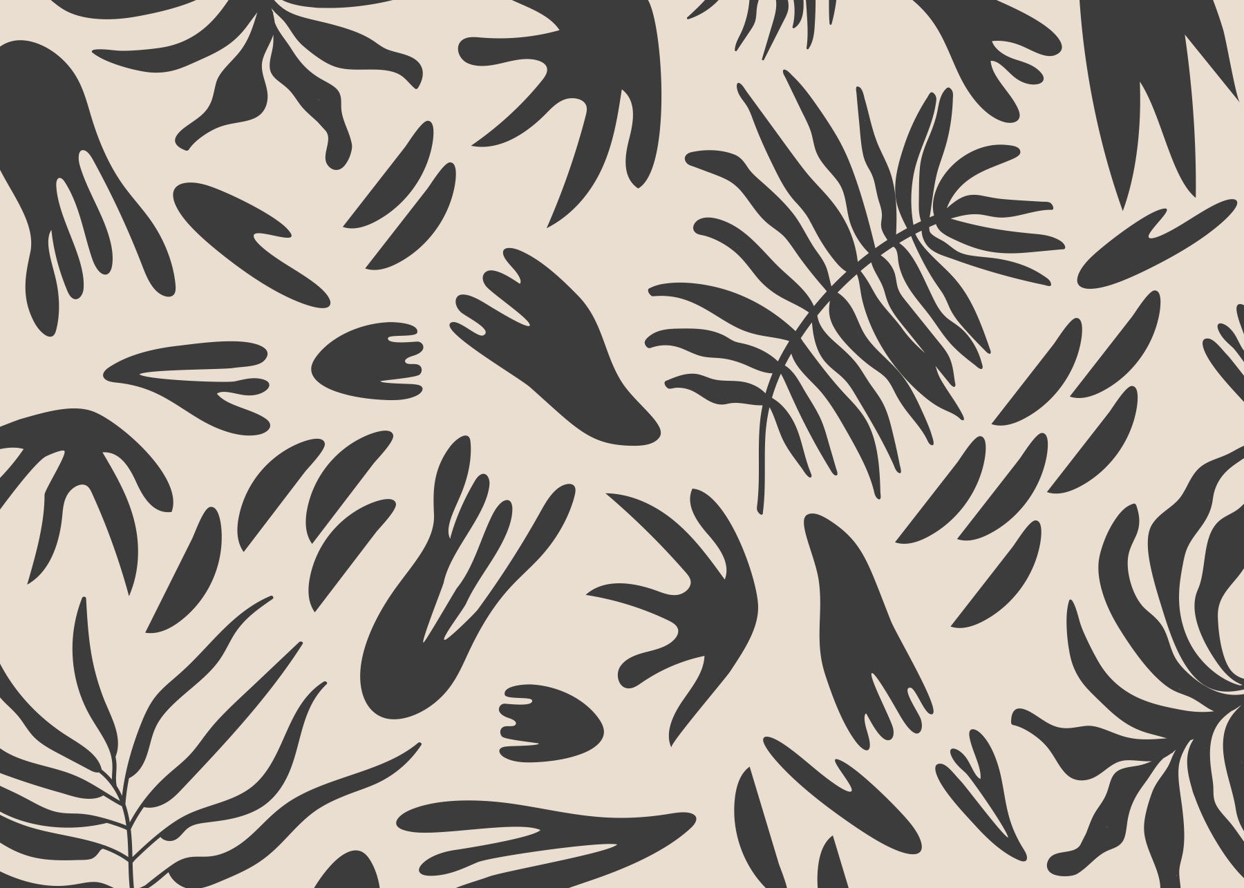Transform your room with this modern botanical wallpaper. The design features bold, dark leaf cutouts against a light beige background. It offers a stylish, simple way to bring nature indoors. Ideal for bedrooms to create a calm space, living rooms for a stylish accent wall, or hallways for a touch of character. This wallpaper for walls fits well with many décor themes.