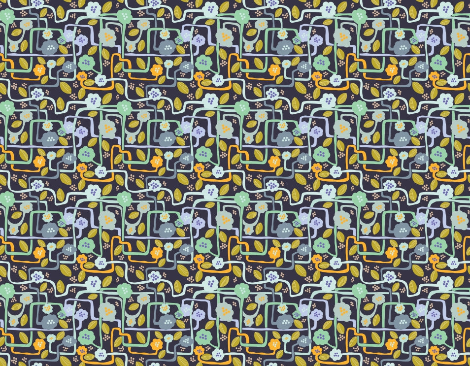 Botanical nighttime serenade wallpaper with dark floral tones.