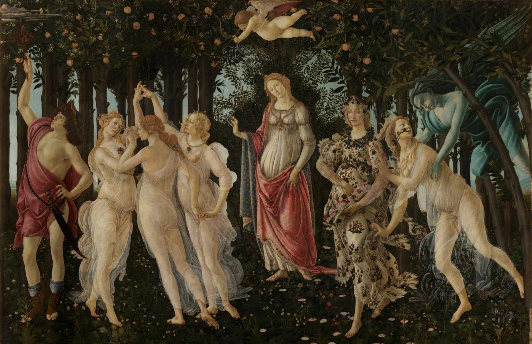 Classic Primavera mural with Botticelli's artistic brilliance.