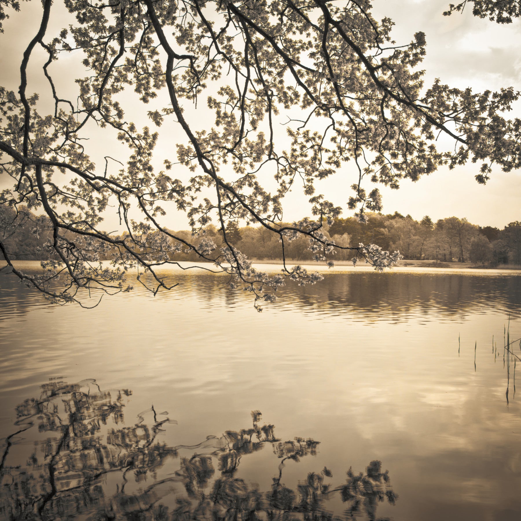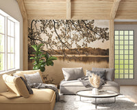 Immerse your living space in the tranquil beauty of 'Branches above Lake'. This stunning wall décor captures a serene scene, where the delicate branches of a blossoming tree gracefully extend over a placid lake. The subtle interplay of light and shadow casts an ethereal glow, creating a calming and reflective atmosphere. The intricate details of the branches, combined with their shimmering reflections on the water's surface, offer a visual feast. The warm, muted tones evoke a sense of peace and harmony, making it an ideal addition to any room seeking a touch of natural elegance. Bring the stillness and understated charm of a lakeside vista into your home and create an atmosphere of restful contemplation. Invite the beauty of nature into your interior spaces with this captivating landscape.