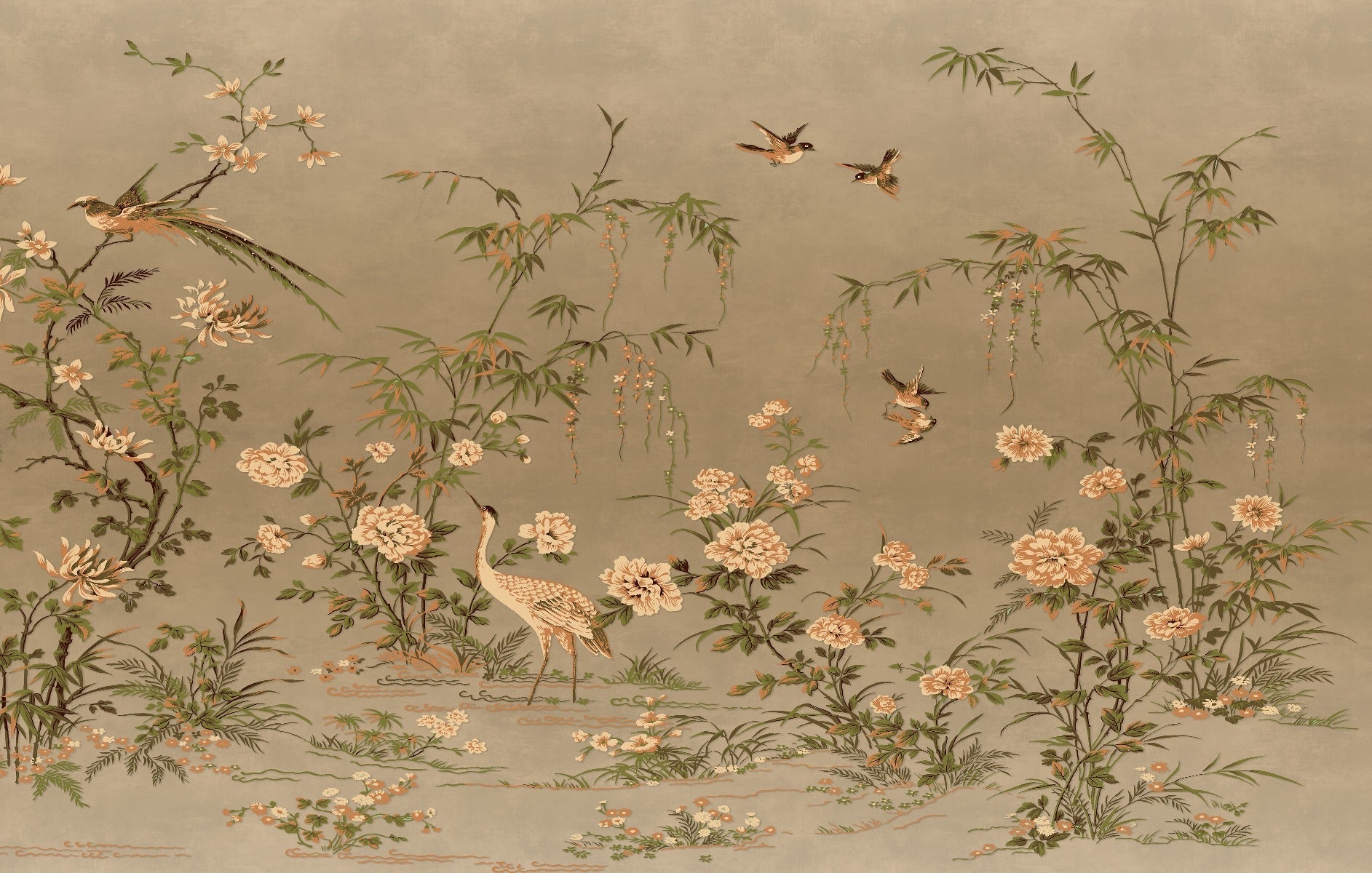 Chinoiserie wallpaper with Japanese birds and trees