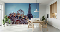 Transport yourself to the heart of Paris with this enchanting wall décor. Featuring a vibrant carousel, adorned with glowing lights and intricate detailing, set against the iconic silhouette of the Eiffel Tower, this artwork captures the timeless magic and romance of the City of Lights. The warm glow of the carousel's lights contrasts beautifully with the steely structure of the Eiffel Tower, creating a captivating visual harmony. Perfect for adding a touch of whimsy and sophistication to any room, this piece evokes a sense of nostalgia and wonder. Let the spirit of Paris fill your space, creating an inviting atmosphere filled with dreams of adventure and unforgettable moments. Bring home a piece of Parisian charm.