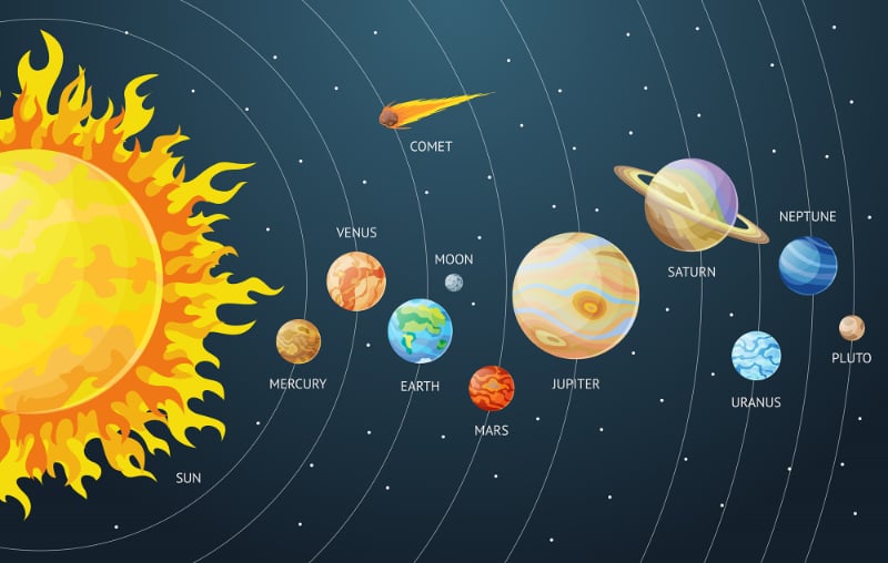 Educational planets wallpaper mural for walls