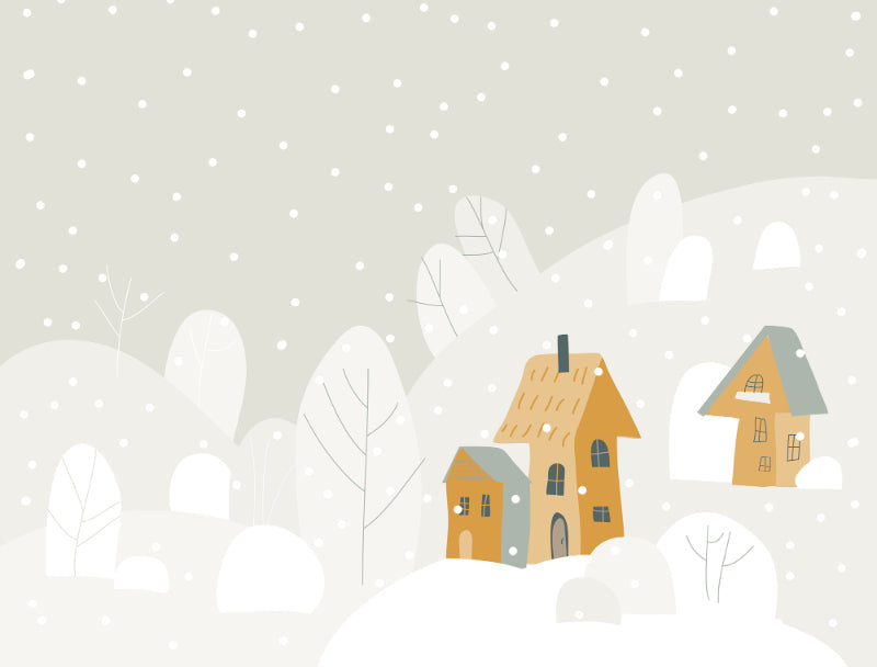 Cartoon Winter Cottages Wallpaper Mural - Giffywalls