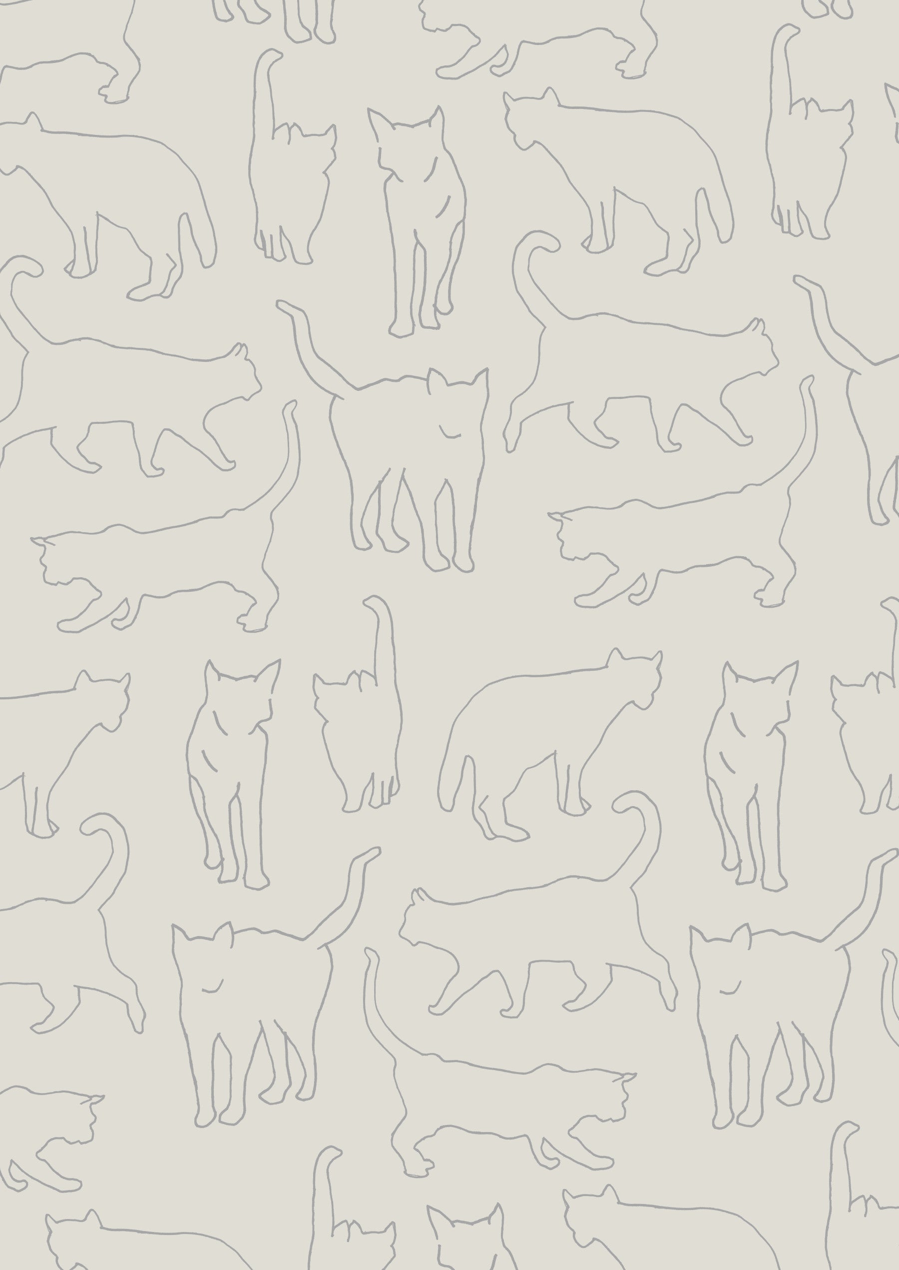 Wallpaper for walls showing a sophisticated, pale, and endearing cat sketch repeat.