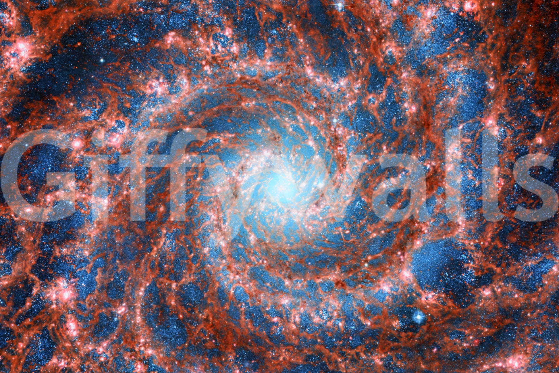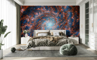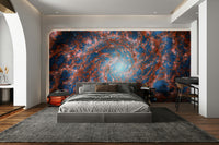 Capture the drama of the cosmos with this swirling celestial pattern. Deep blues mix with fiery oranges. This wallpaper displays a captivating dance of galactic energy. Consider this design as wallpaper for walls to make a bold statement in any room. Ideal for a modern living space or a teenager's bedroom. The patterns add depth to interiors, creating an illusion of vastness. Transform your home into a gallery of space art.