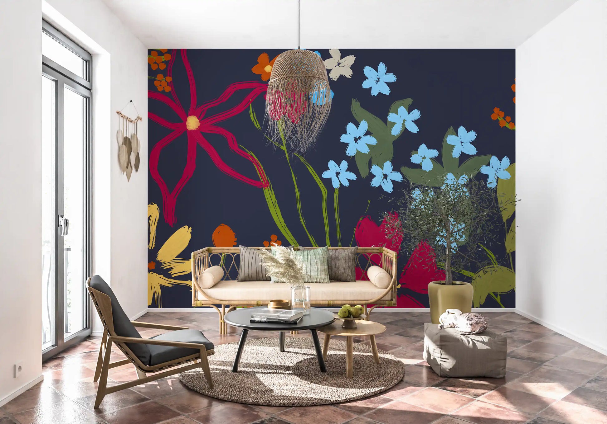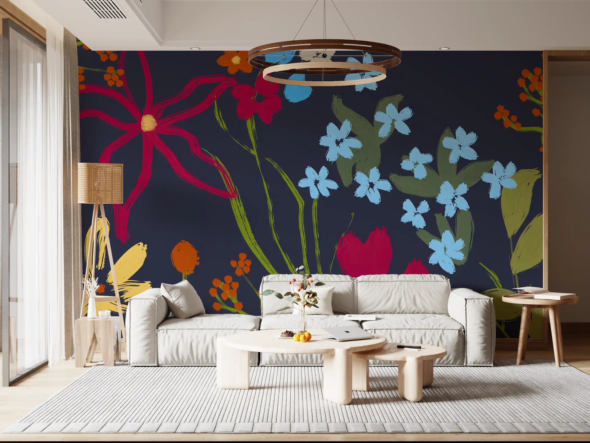 Bring the exuberance of summer into your space with this lively floral wall décor. "Cheerful Floral Summer" showcases an array of hand-painted style blossoms in a vibrant palette. Imagine the feeling of sun-drenched meadows bursting with life. Bold reds, sunny yellows, sky blues, and bright oranges dance across a deep background, creating a striking contrast. Each bloom is rendered with expressive brushstrokes, lending a raw, artistic quality to the piece. This eye-catching design transforms any room into a cheerful haven, evoking the carefree spirit and warmth of a summer garden. It's more than just decoration; it's a burst of happiness for your walls.