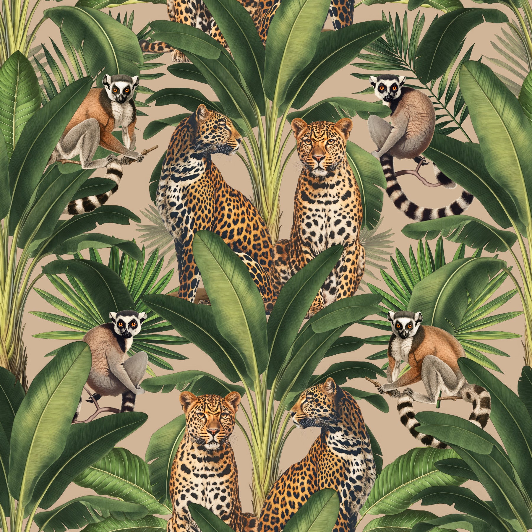 Cheetah And Monkey Jungle Beige Wallpaper⁠