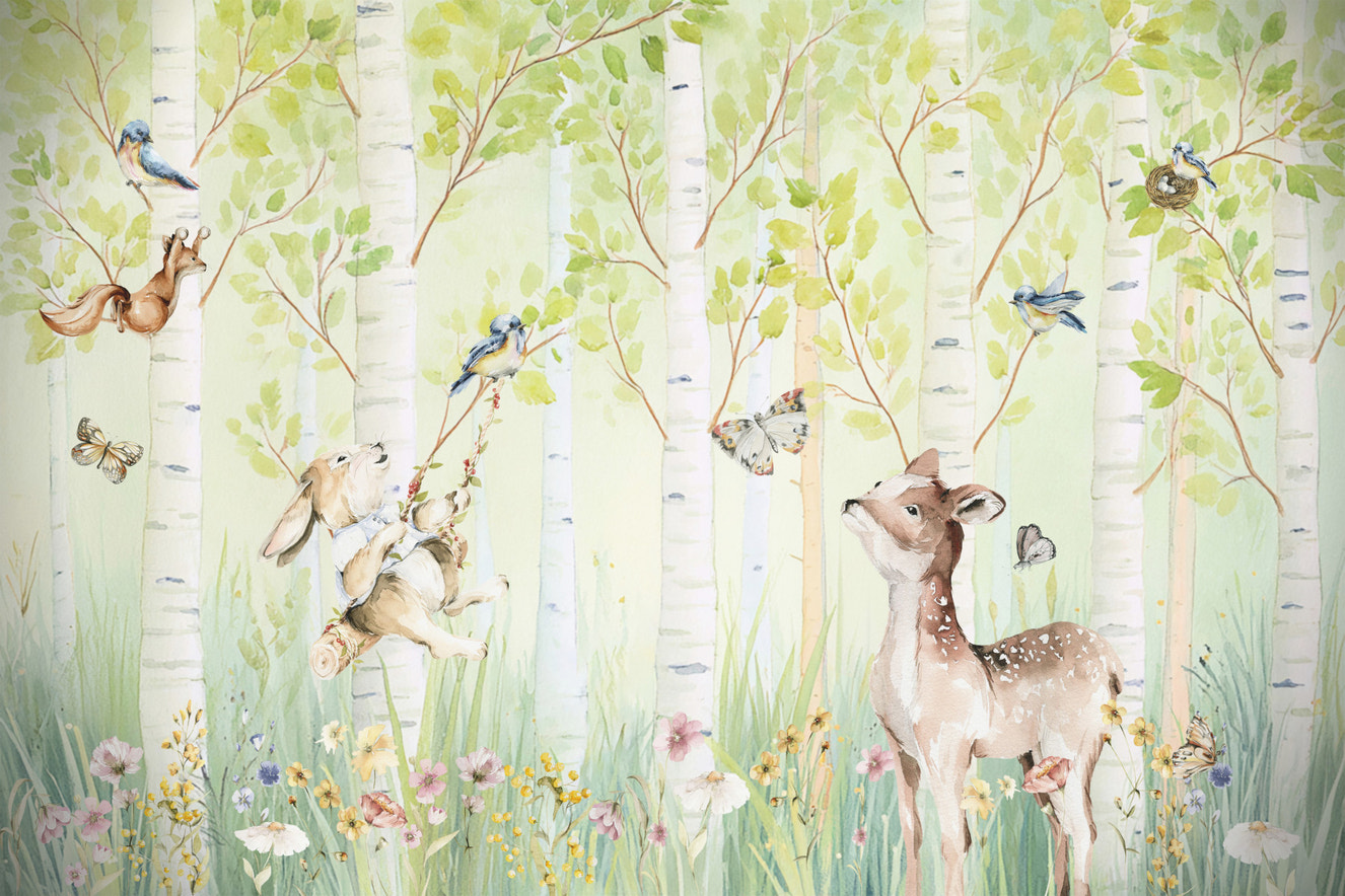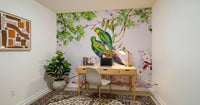 Bring a touch of the tropics to your home with this charming parrot and cherry blossom wallpaper for walls. The vibrant green and blue parrots perch amidst delicate pink and white cherry blossoms, creating a serene and inviting atmosphere. The light background allows the colors to pop, making it ideal for a living room, bedroom, or even a nursery. This design brings a natural element indoors, infusing your space with a sense of calm and beauty. It works especially well in rooms with neutral furniture and décor, adding a focal point that elevates the overall style.