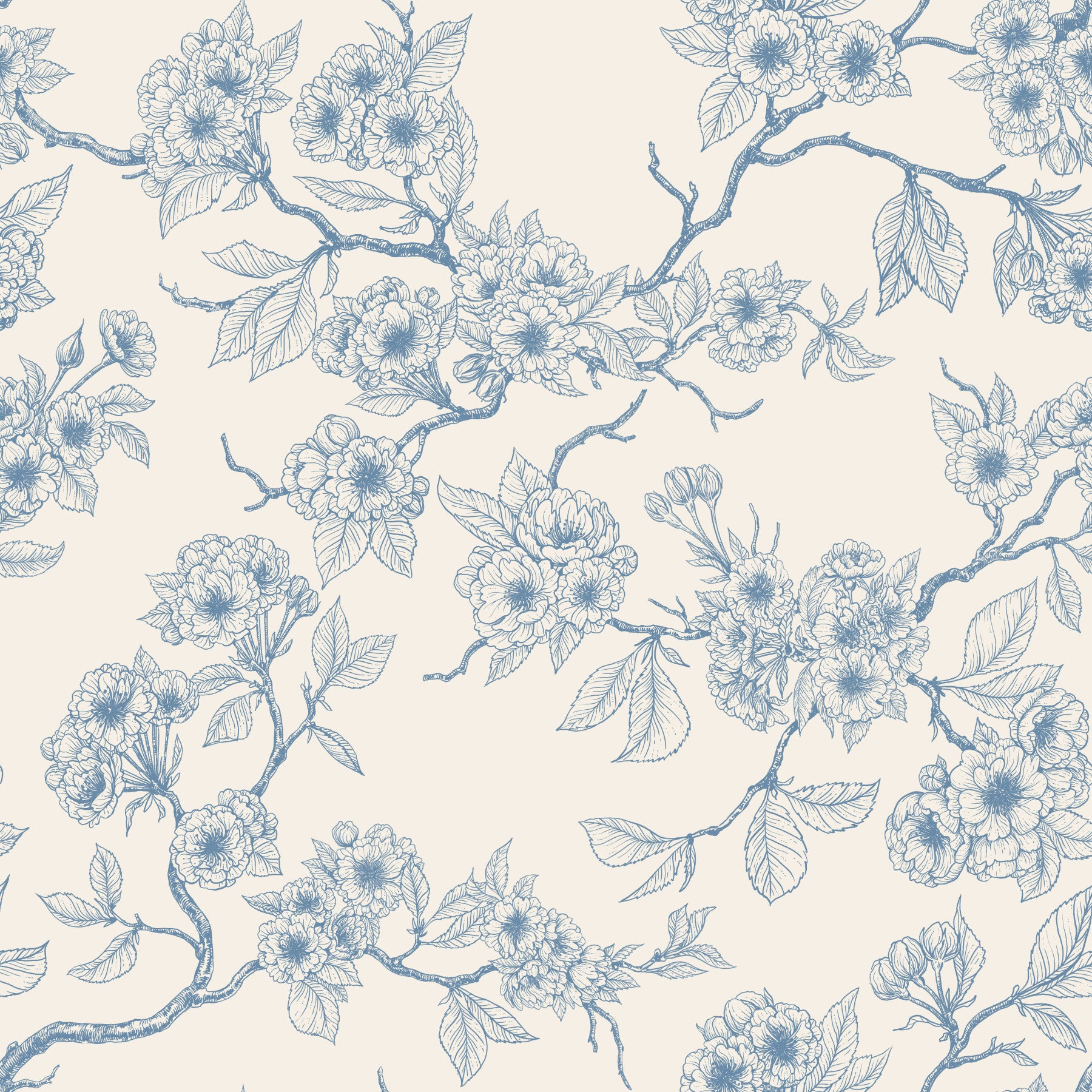 Chery blossom branches in blue and off white Wallpaper⁠GD9204