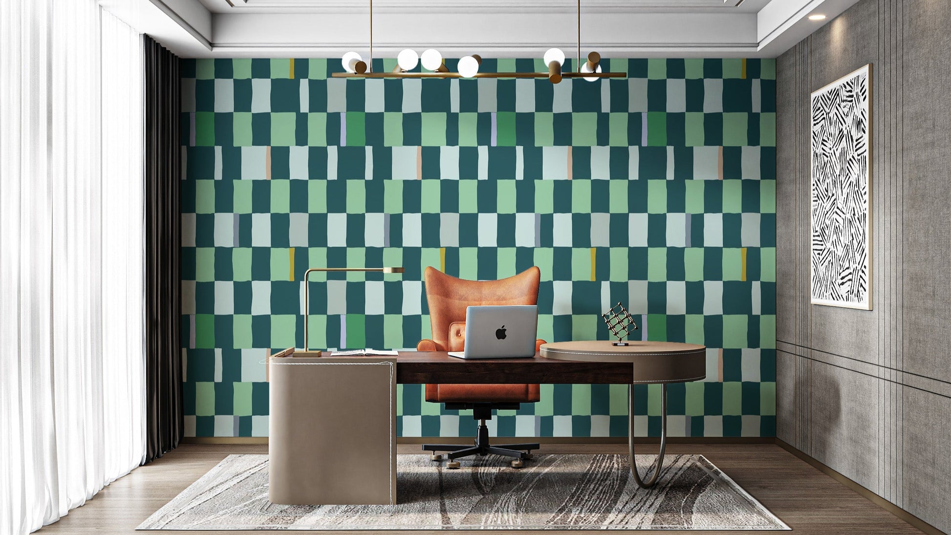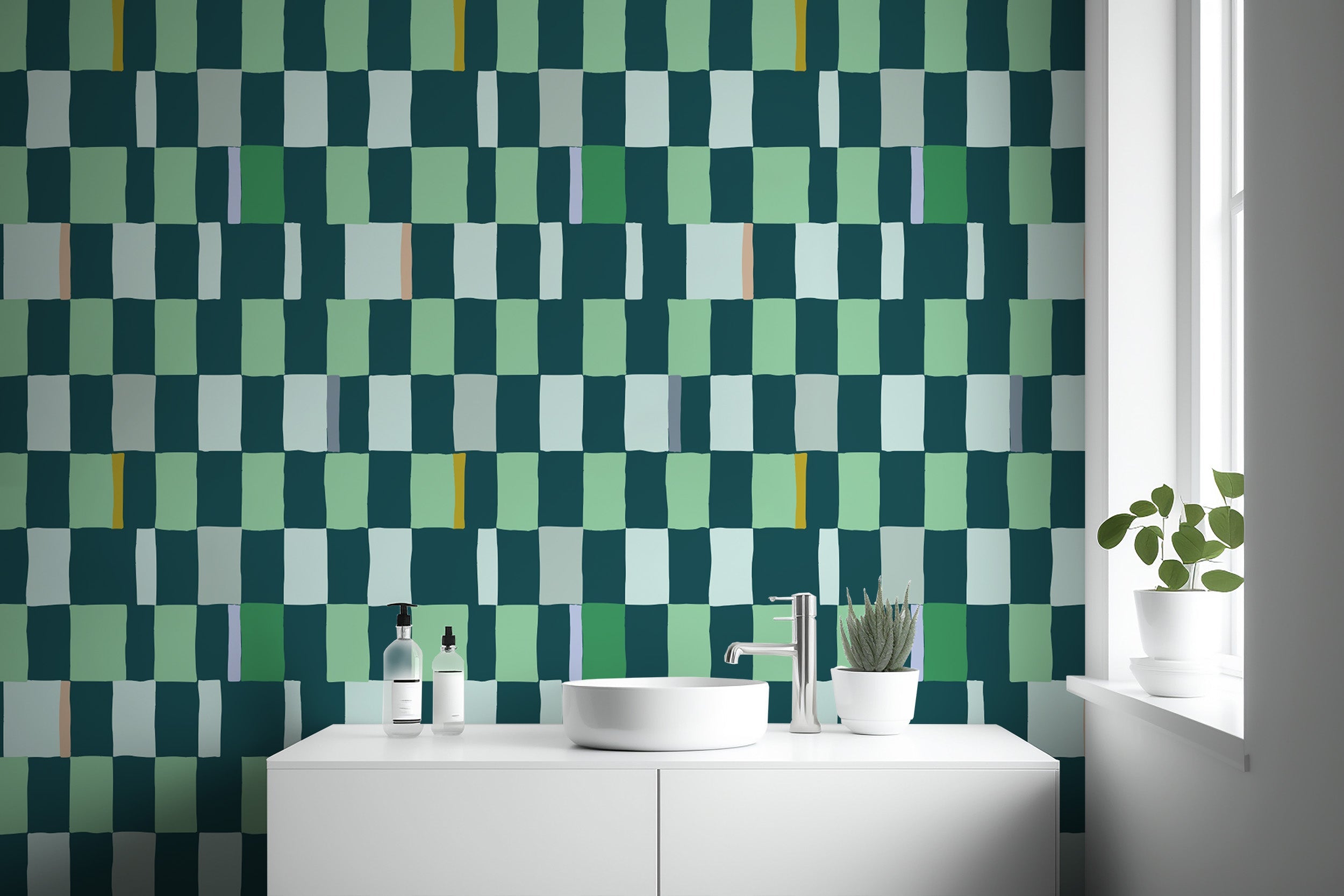 Contemporary chic checkered wallpaper for bright summer spaces.