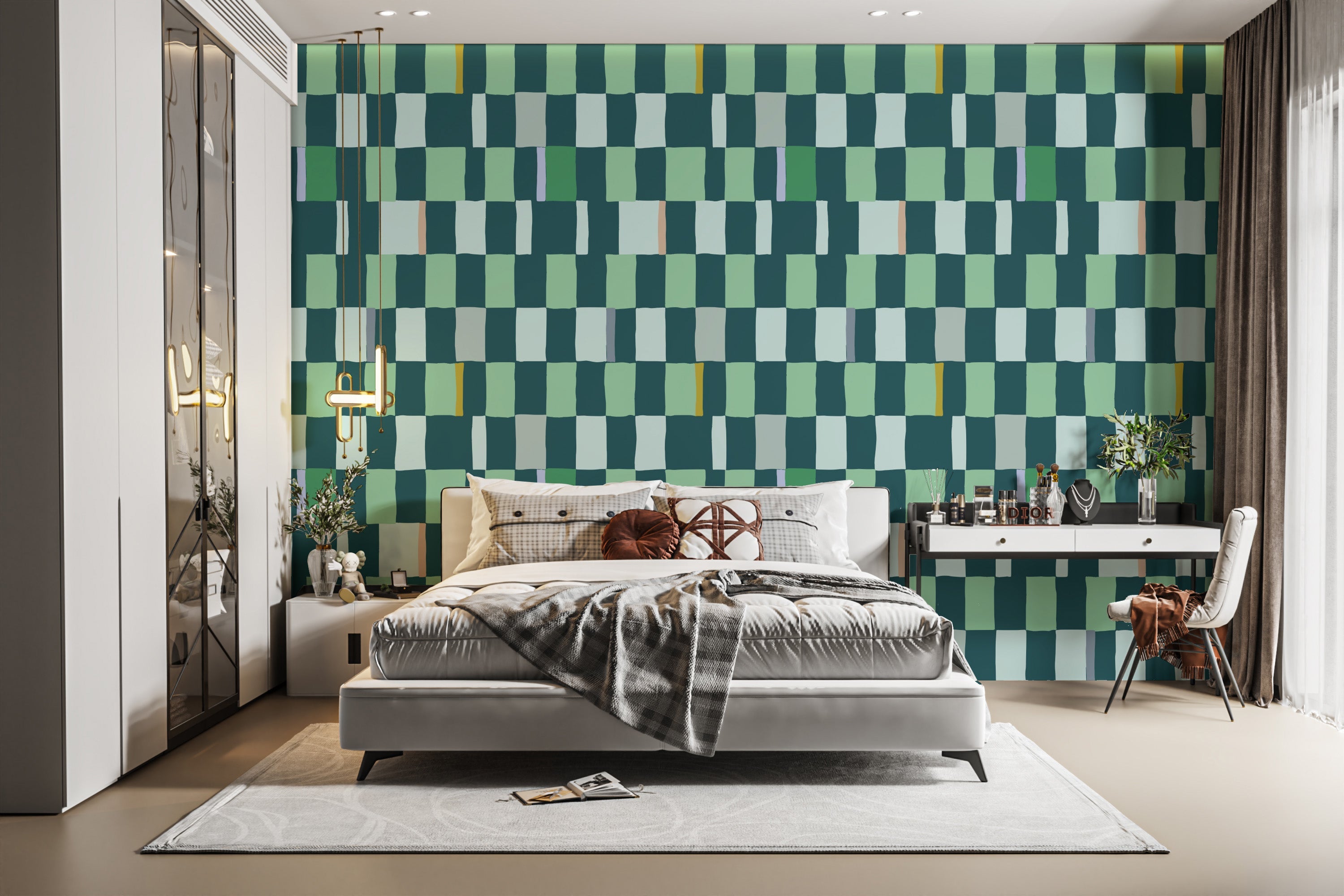 Bold chic summer checkered wallpaper for dynamic wall styling.