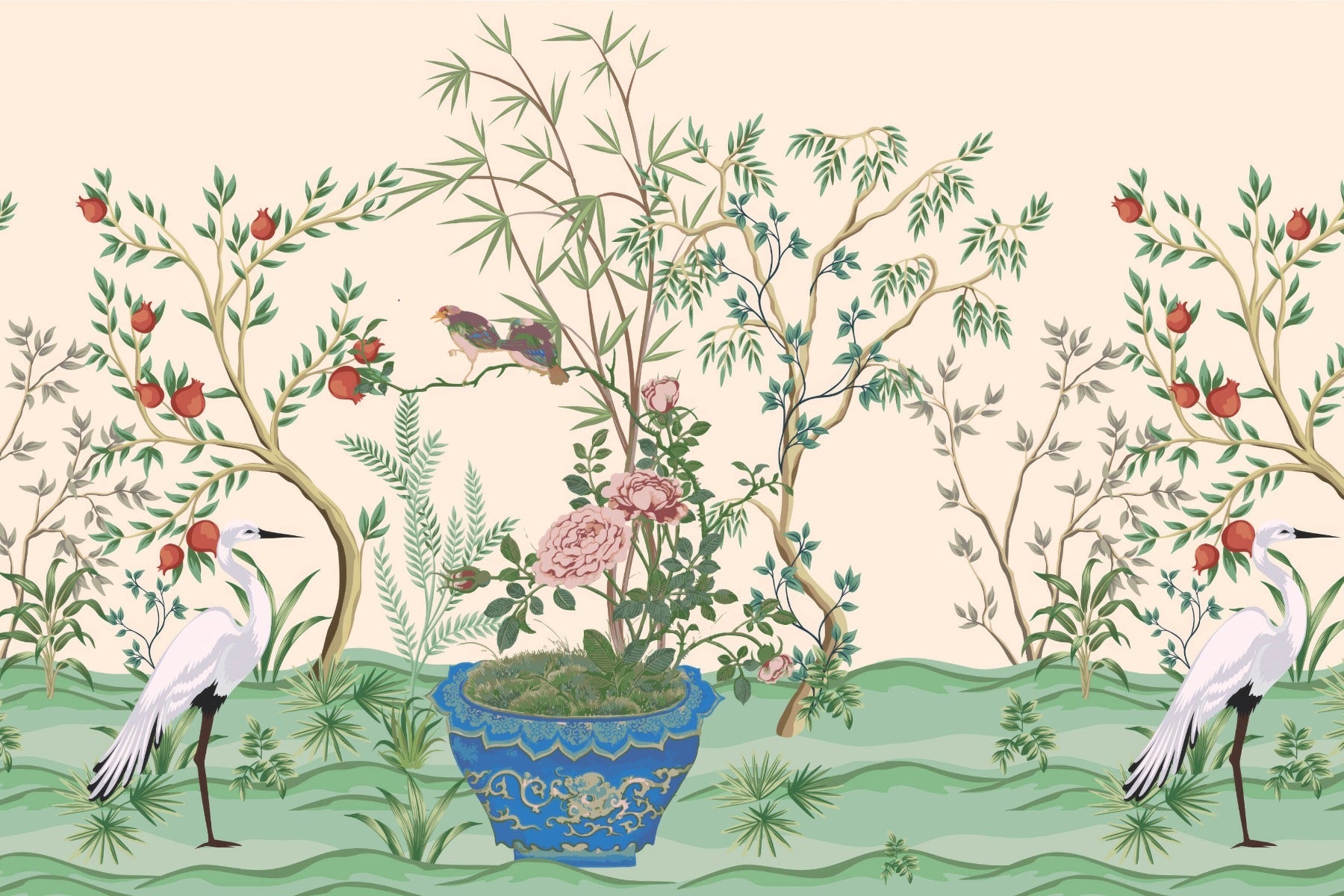 The Chinese garden wallpaper mural is a tranquil site in your house where you can escape. Its traditional Chinese garden scenes can create the ultimate feeling of peace in your home.  This living room wallpaper mural brings an element of serenity to your home with its elegant depiction of timeless Chinese garden scenes. Each stroke and colour has been carefully chosen to replicate the serene gardens of the East, creating a backdrop that's not only beautiful but also soothing. It's not just a backdrop; it's a conversation starter, an inspiration piece, and a work of beauty. Perfect for homeowners seeking a peaceful living environment.