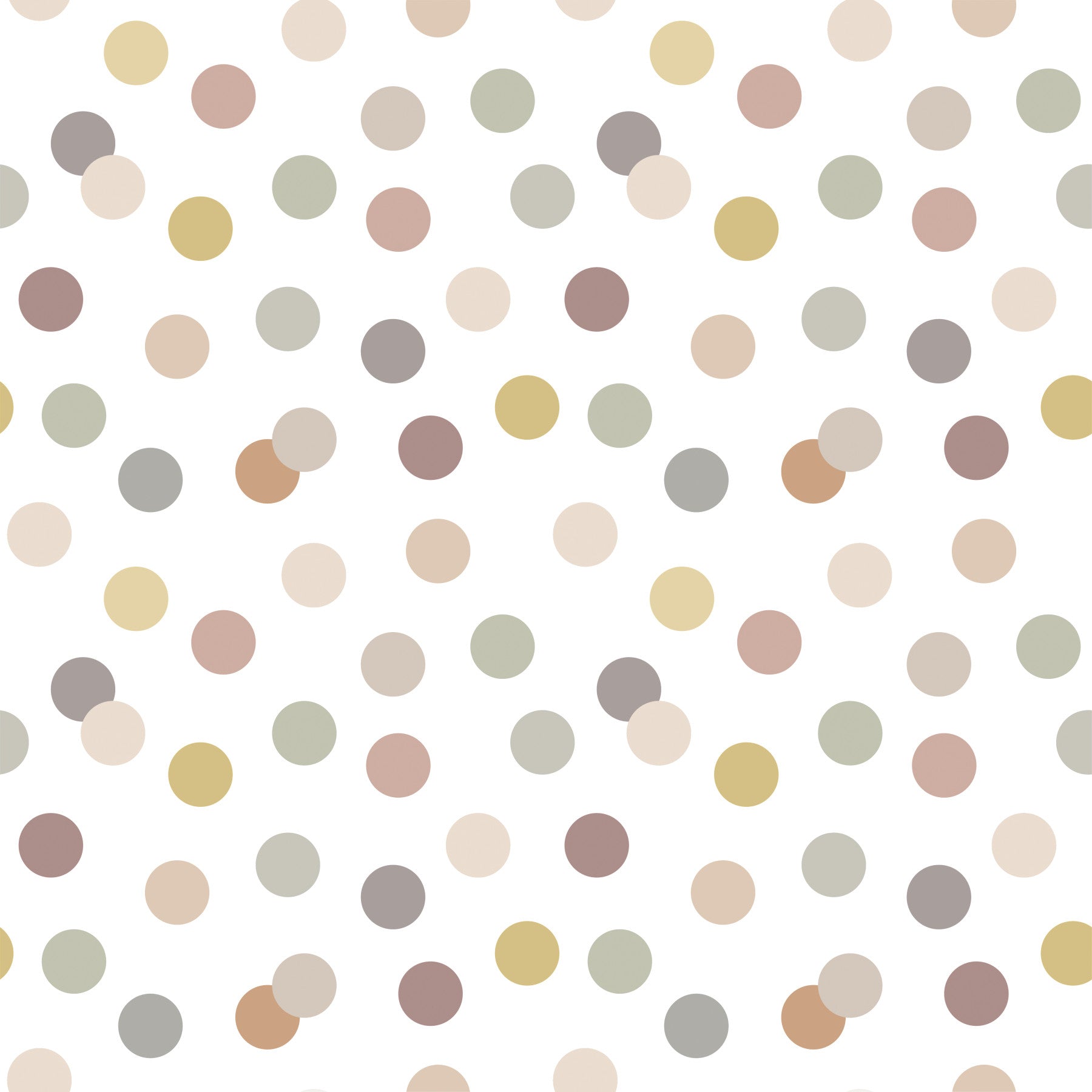 Add a soft, playful touch to interiors with this dotted wallpaper. The array of circles uses muted pinks, yellows, and greens against a white backdrop. Use wallpaper for walls in a children's bedroom, playroom, or nursery for a friendly, casual feel. The delicate colors create a gentle atmosphere that works harmoniously with furniture and accessories. This design presents a simple and elegant way to enrich your decor.