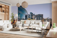 Transform your space with the dynamic energy of a modern metropolis. This cityscape design captures the vibrant heart of urban architecture and light trails. The cool blue and warm gold tones create a sophisticated, contemporary aesthetic, making it suitable for a living room, home office, or hallway. The high-resolution image brings a sense of depth and perspective, creating a stunning focal point in your interior décor. This wallpaper for walls adds depth, creating a sense of openness and sophistication. Embrace urban elegance in every room.