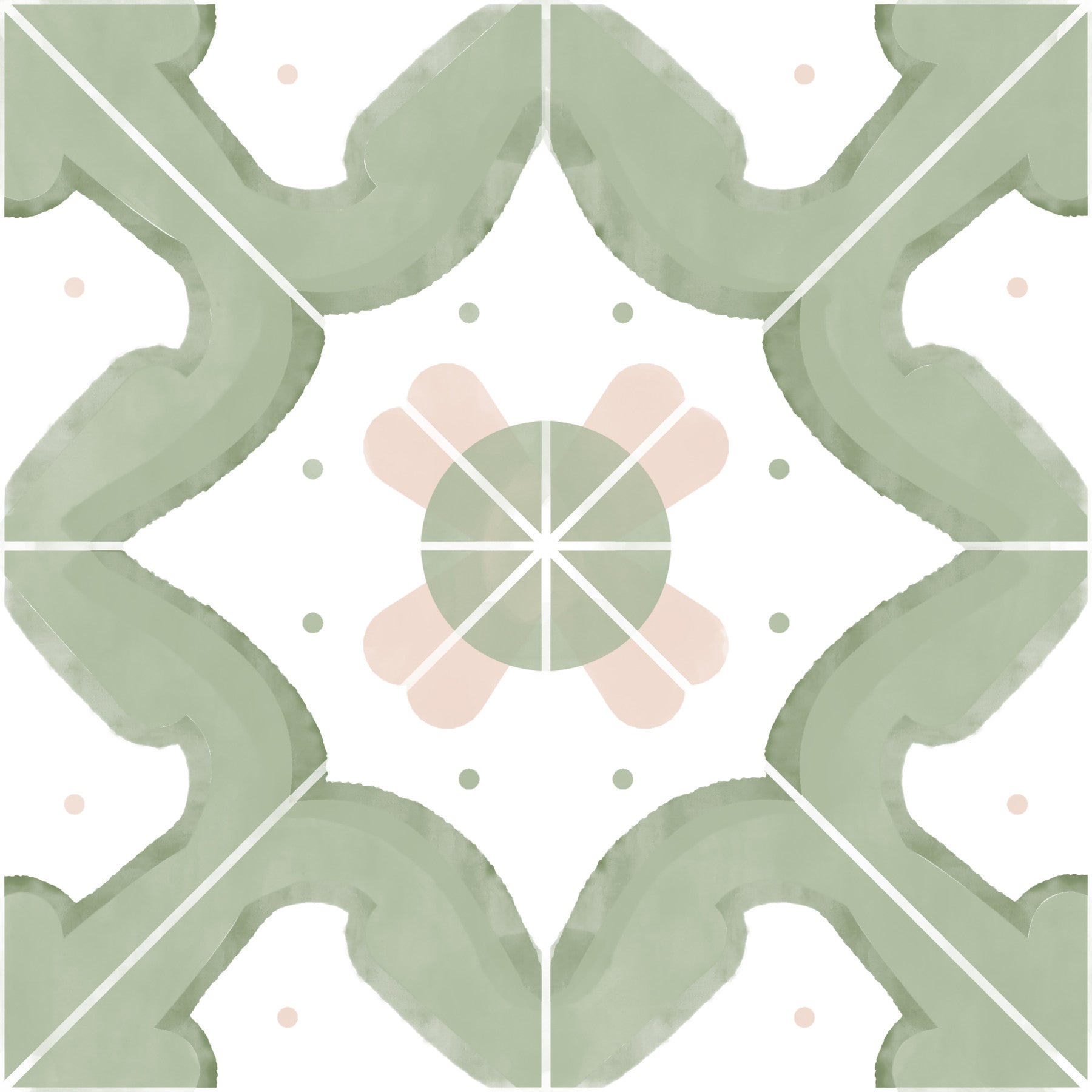 Bring timeless elegance to your digital space with our Classic Sage Kitchen Tiles wallpaper. This design evokes the warmth and comforting atmosphere of a traditional kitchen, reimagined with a modern, artistic touch. The soothing sage green hues create a calming backdrop, reminiscent of natural herbs and classic culinary spaces. Intricate geometric patterns, formed by elegant floral and petal shapes, are rendered in a watercolor style, giving the wallpaper a soft and inviting texture. Delicate accents of blush and subtle dot motifs add a touch of understated sophistication. The crisp white lines separating the tiles enhance the clarity and definition of the pattern, creating a visually pleasing and harmonious composition. Perfect for adding a touch of vintage charm to any room, this wallpaper is a versatile choice for both contemporary and traditional interiors.