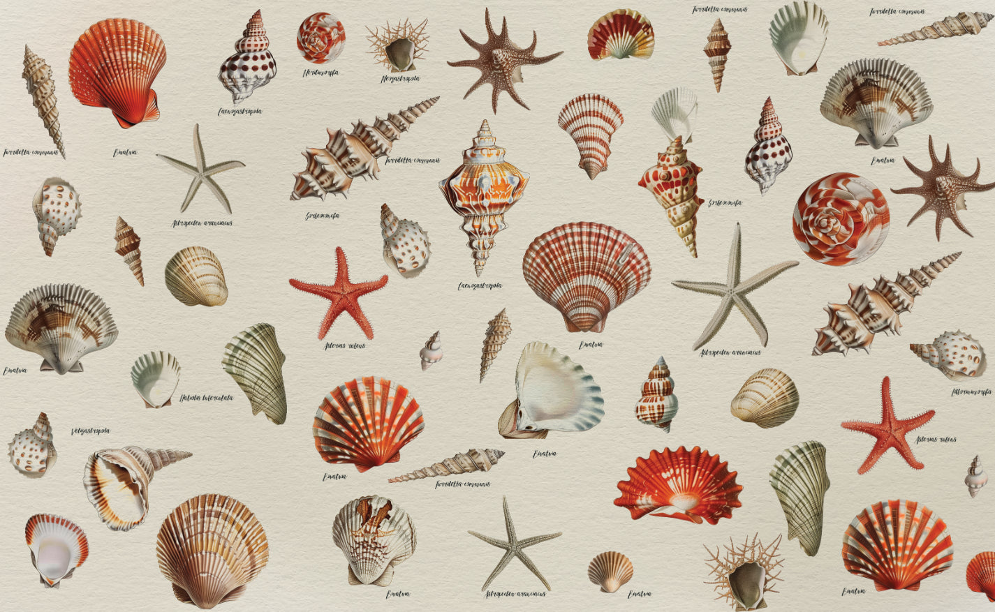Delicate marine shells wallpaper décor