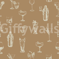 Sophisticated drink illustrations on wallpaper