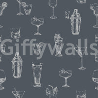 Cocktail Sketches Wallpaper with line drawings