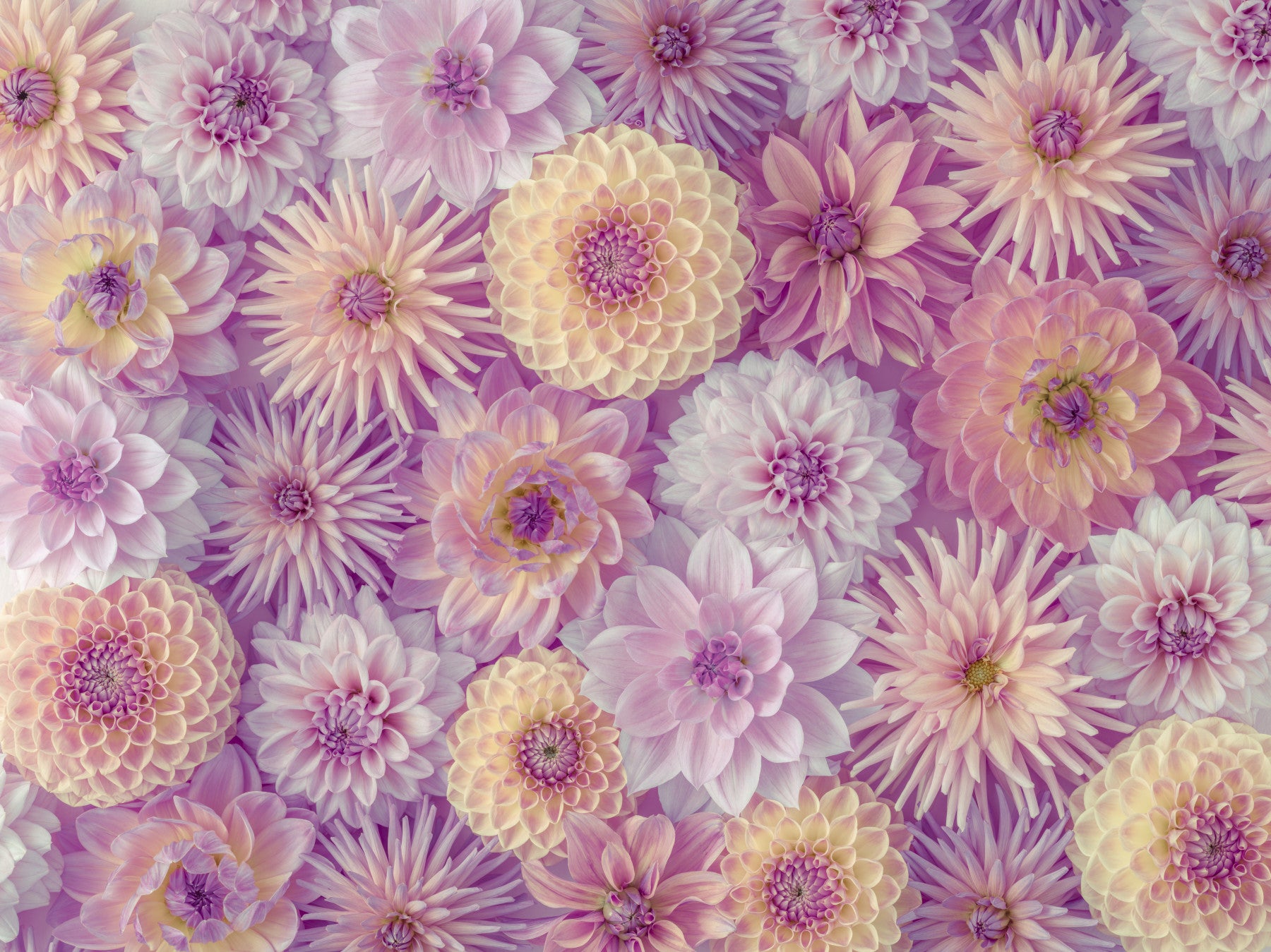 Adorn your home with the vibrant artistry of our Colorful Dahlia Mosaic Wall Mural. This captivating mural wallpaper features a stunning arrangement of dahlia blooms, presented in a rich, mosaic-like pattern. The design showcases an abundance of diverse dahlia varieties, each contributing to a tapestry of vivid colors, intricate petal forms, and varied textures, creating a dynamic and immersive visual experience. It's an ideal wallpaper for walls to introduce unique character and a profound feeling of joyful vibrancy and inspiring natural beauty to any room. Its lively palette and detailed composition offer a compelling backdrop, ensuring your home feels both bright and beautifully connected to the exquisite perfection and diverse splendor of nature's design. This art piece is an ideal choice for a harmonious and uplifting home.