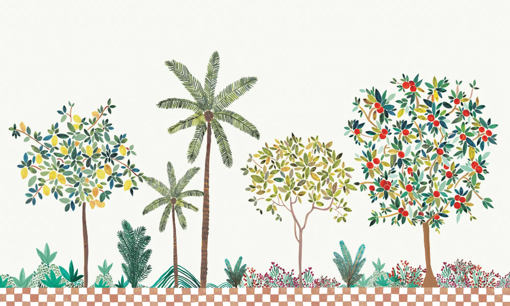 Bring the jungle into your walls with this colourful tree mural. This jungle wallpaper, a symphony of lush, vivacious trees and tropical flora, invites a lively yet soothing energy into your room. Feast your eyes on the detailed citrus hues and the playful dance of palm fronds against a transparent sky backdrop. Ideal for anyone desiring to enhance their living or working space with a dash of mother nature's colour palette, this mural will provide an artistic escape into a tropical paradise. Immerse yourself in the bold, creative expression of the lively spirit of the jungle, and let your walls tell a story of wild, natural beauty.
