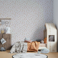Embrace the whimsical charm of 'Confetti Boho Woodland,' a wallpaper pattern design that beautifully blends nature-inspired aesthetics with a touch of playful confetti. Soft, earthy tones in blush pink, muted terracotta, golden ochre, and sage green are scattered across a clean beige background, evoking a sense of serene woodland magic. The delicate, organically dispersed polka dots create a subtle yet captivating pattern, perfect for adding a touch of bohemian elegance to any space. This wallpaper offers a calming and stylish backdrop, ideal for those who appreciate understated design with a hint of festive spirit.