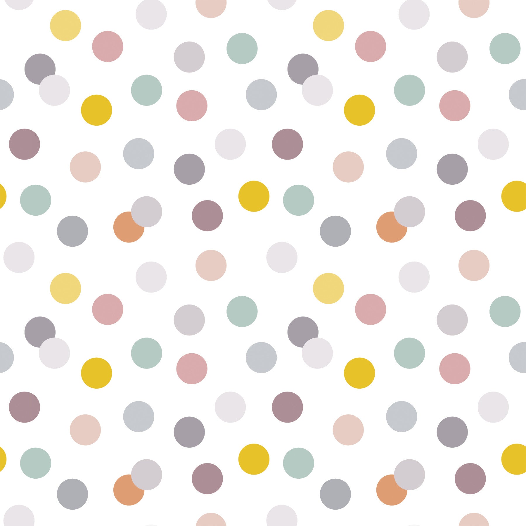 Bring a sprinkle of joy to your space with this playful dot pattern. Soft pinks, yellows, and greens dance on a white background creating a lively, cheerful atmosphere. This wallpaper for walls brings a whimsical touch to any room. Use it in a kids' room, playroom, or even a kitchen for a touch of fun. The scattered design helps make any room look lively and bright, and its light tones create a calming ambience.