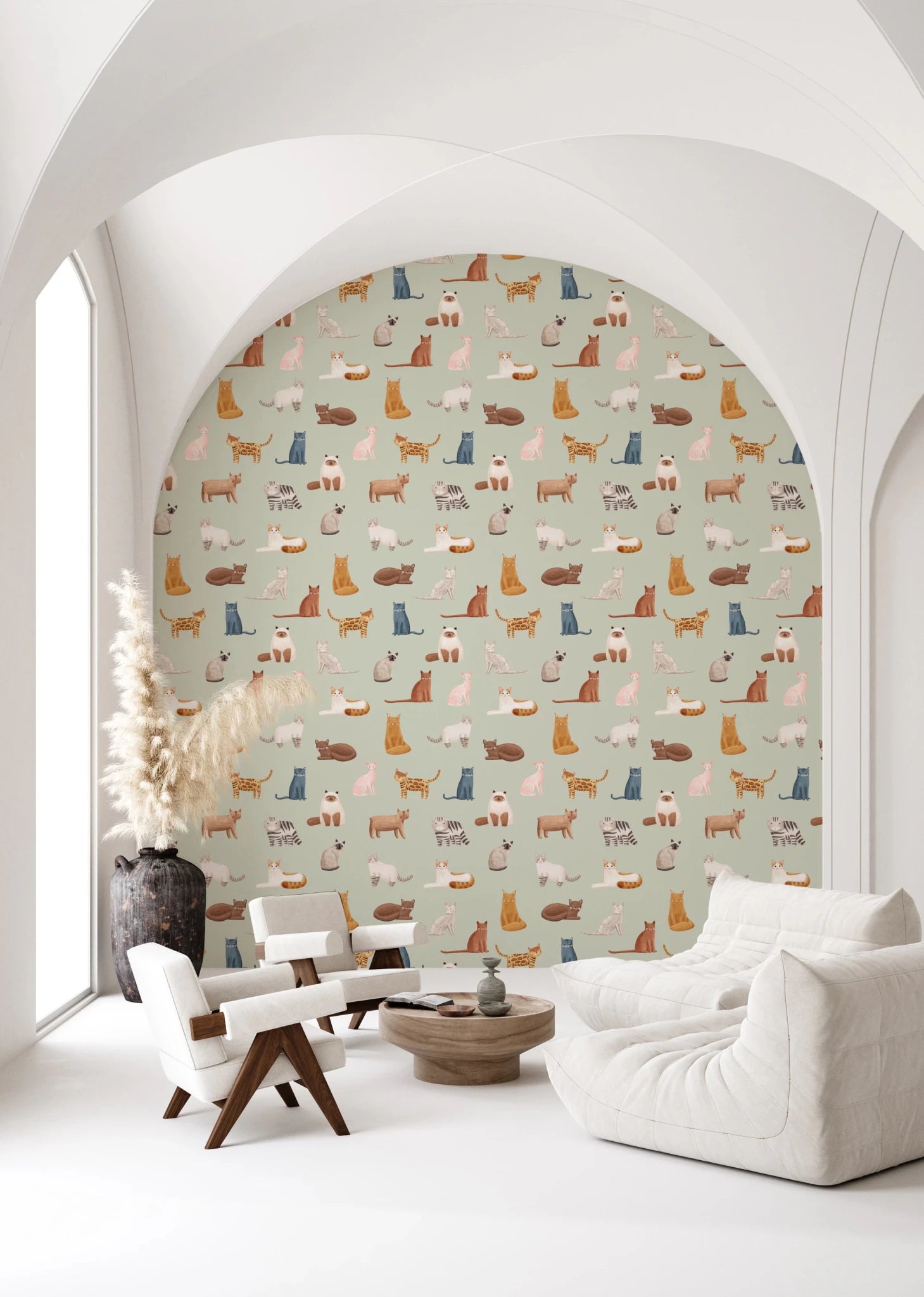 Cool Cats in Sage Green Wallpaper⁠