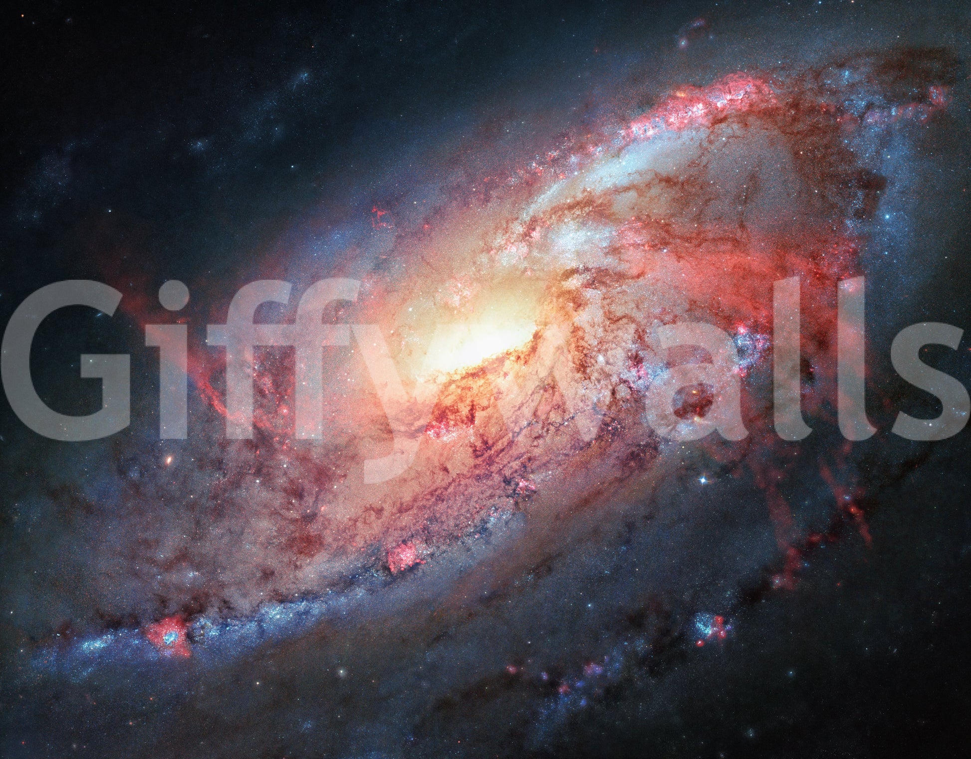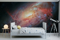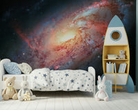 Dive into the depths of space with this stunning galaxy wallpaper. The design features a spiral galaxy with bright, energetic colors, creating a captivating and dynamic look. The mix of blues, reds, and whites form an otherworldly ambiance that transforms any space. Perfect for a bedroom, living room, or office, this wallpaper for walls introduces a sense of wonder and exploration. It easily integrates with modern and minimalist interiors, becoming a focal point that sparks conversation and inspires dreams of distant stars.