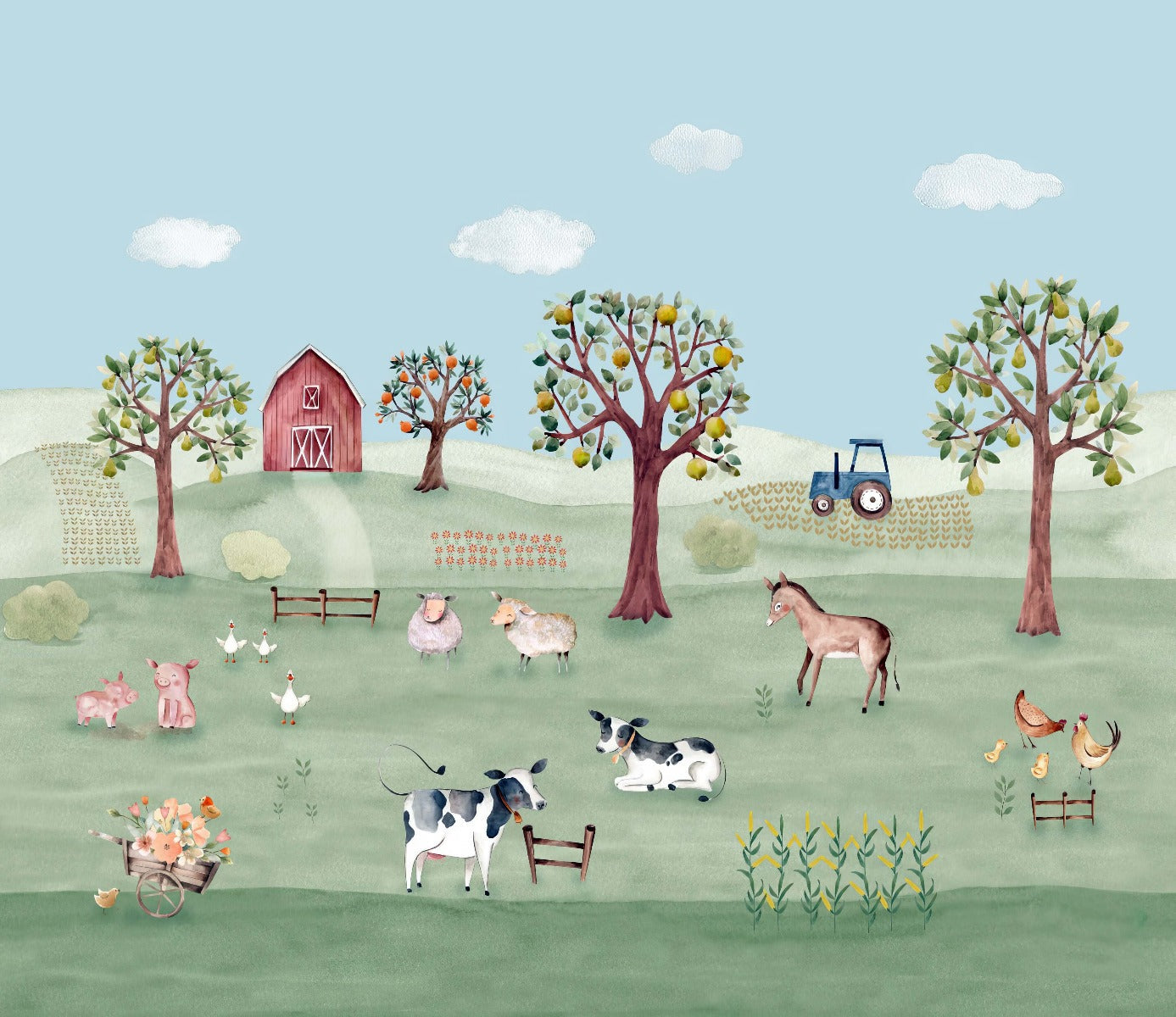 If you're on the hunt for something special to brighten your child’s room, the country charm wall mural is an excellent selection. This kids room wallpaper features a lively countryside theme, complete with farm animals and lush landscapes. It's not only visually engaging but also designed to withstand the energetic lifestyle of little ones. The vibrant colors and engaging scenes engage children's senses and spark their imagination, making this mural a perfect backdrop for both playtime and relaxation. This durable wallpaper will keep the room looking fresh and vibrant for years to come, making it a smart investment for any parent.