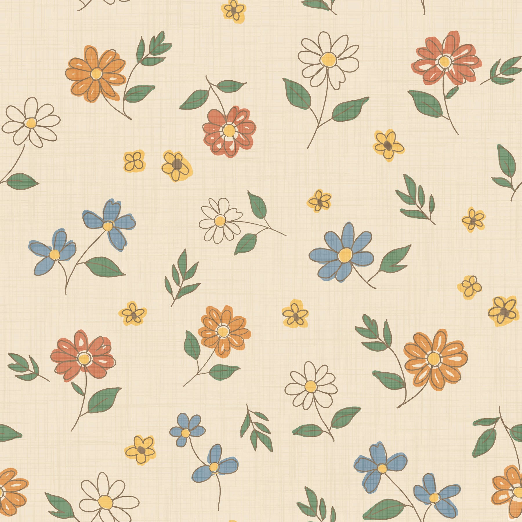 Embrace the comforting charm of a countryside cottage with this delightful wall décor. The 'Country Scattered Floral Cream Granny Core' design features a sweet and simple scattering of hand-drawn-style blossoms in warm hues of orange, red, and blue, interspersed with delicate yellow accents and verdant green leaves. Set against a textured cream background, the pattern evokes a sense of nostalgia and familiar warmth. This design embodies a handcrafted aesthetic, ideal for creating a cozy and inviting atmosphere. Perfect for those seeking a touch of vintage-inspired serenity within their living space, this wall décor will surely add a touch of rustic elegance.