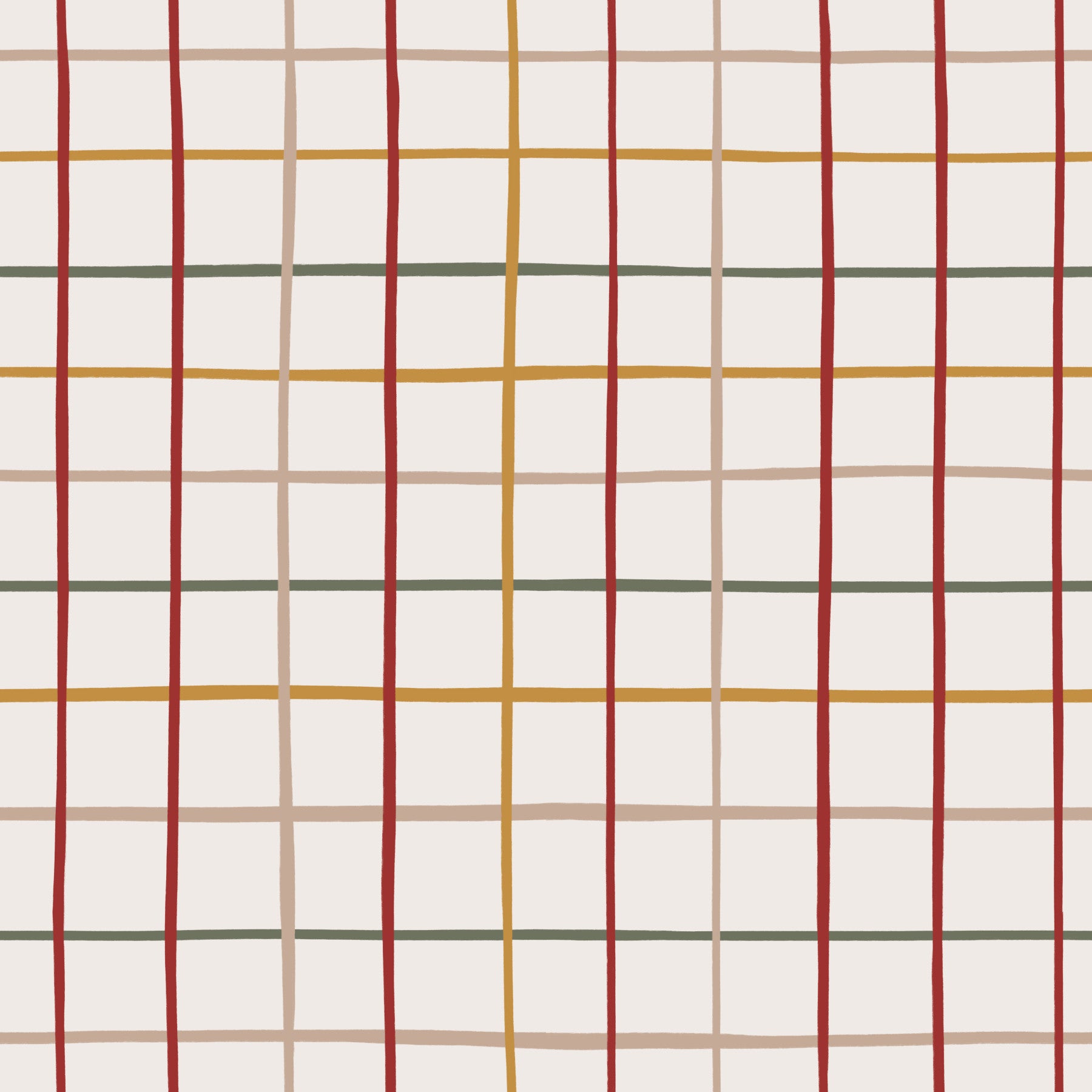 Hand-painted red lines on Cozy Checkered Warmth Wallpaper.