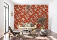Envelop your walls in the warm embrace of 'Cozy Scandi Flower'. This design captures the essence of Scandinavian simplicity with a touch of rustic charm. Burnt terracotta grounds the pattern, providing a comforting backdrop for the stylized botanical elements. Hand-crafted textures and the graphic treatment of the flora evoke a sense of artisanal skill. The flowers, rendered in a soft, contrasting hue, feature intricate line work that adds depth and visual interest. Perfect for creating a snug and inviting atmosphere, this wall covering brings a touch of nature indoors with a contemporary, crafted feel.