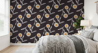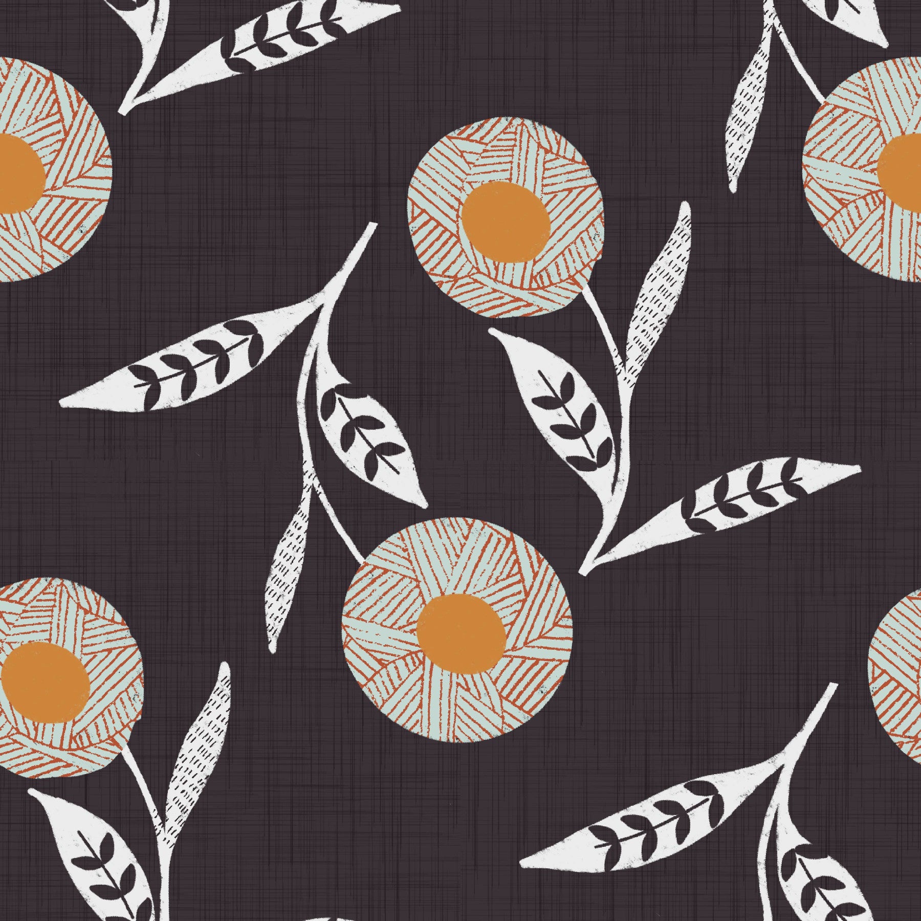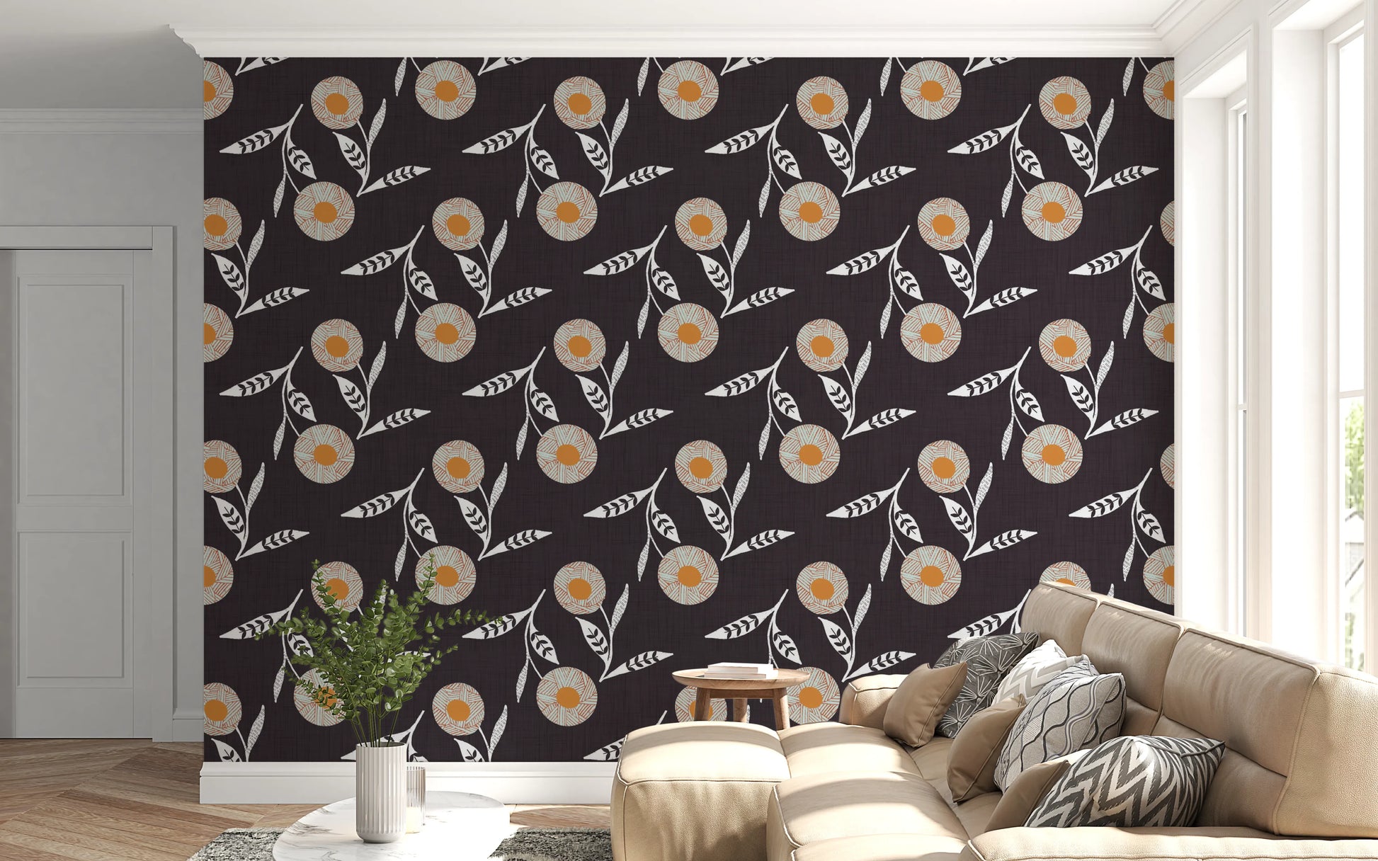 Embrace the understated elegance of "Cozy Scandi Flower Charcoal - Craft Botanical," a wall décor piece that brings the warmth of Scandinavian design to your space. Against a deep charcoal backdrop, stylized floral motifs bloom in crafted simplicity. The flowers feature centers of warm ochre, surrounded by concentric patterns in muted blues and terracotta, creating a captivating textural effect. Stark white stems and leaves add a touch of brightness and contrast, enhancing the overall visual appeal. This design embodies a sense of hygge, offering a serene and inviting ambiance. Perfect for creating a cozy and stylish haven in any room, this wall covering will infuse your walls with a touch of nature-inspired artistry.