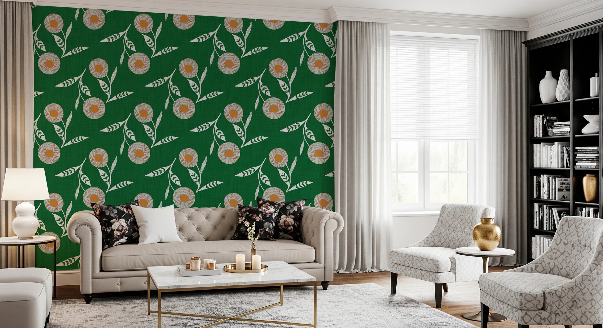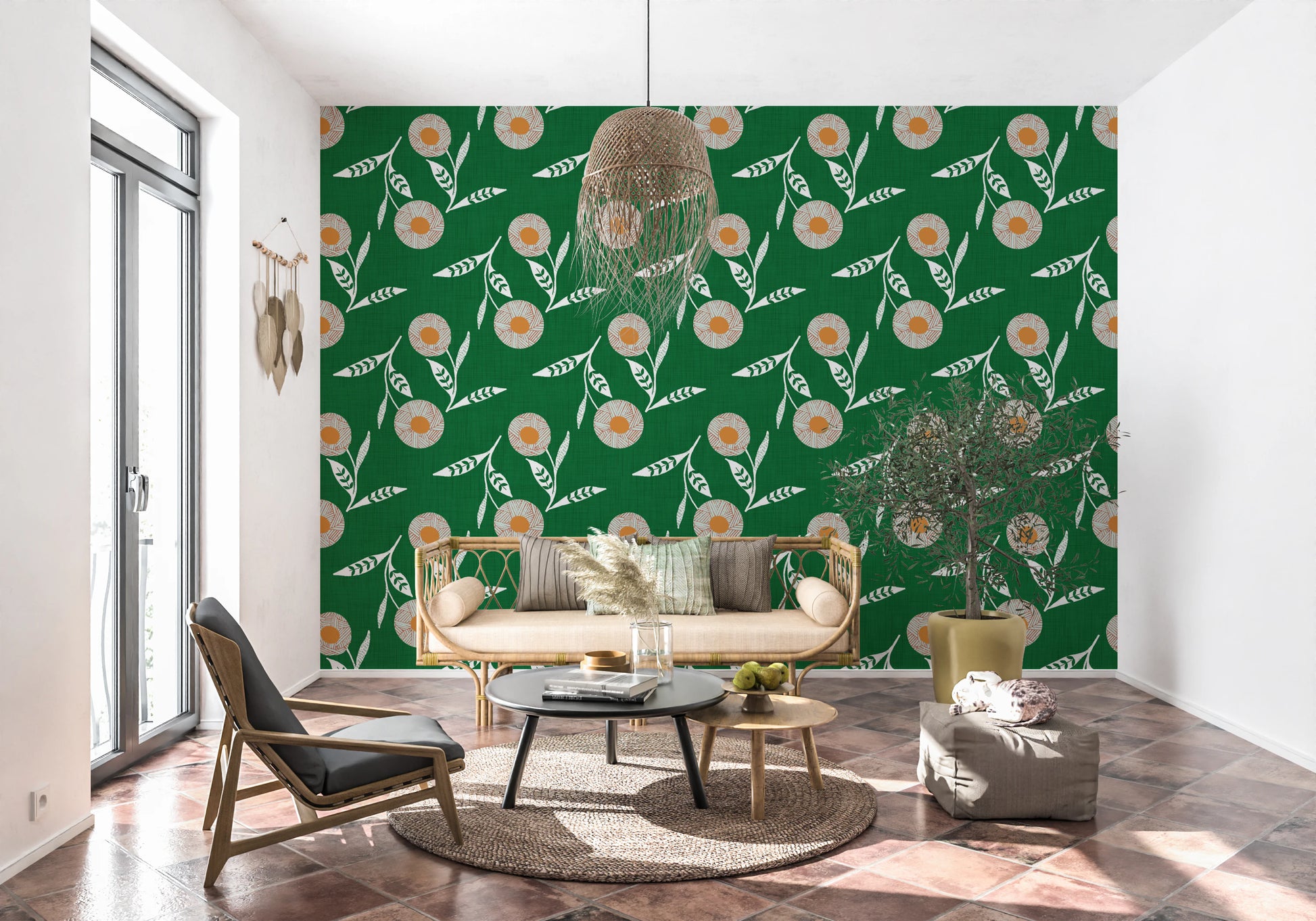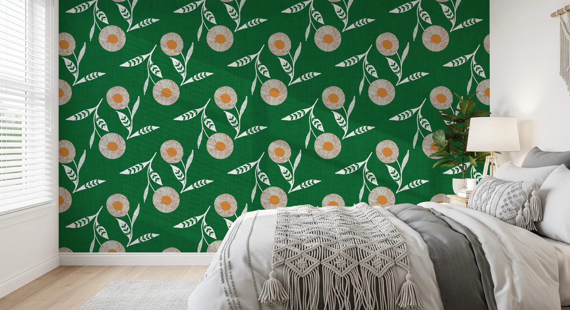 Cozy Scandi Flower Forest Green - Craft Botanical Wallpaper⁠