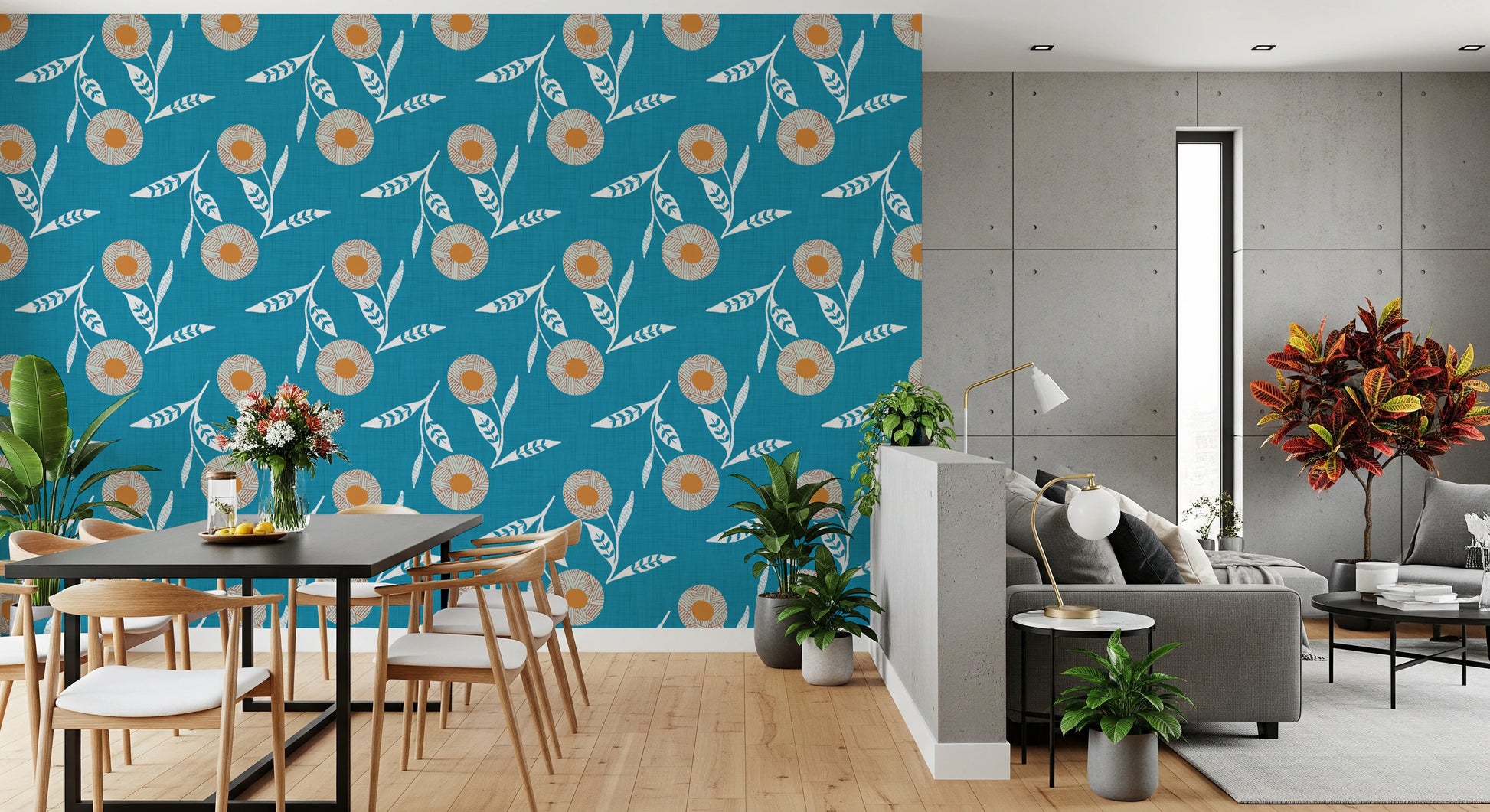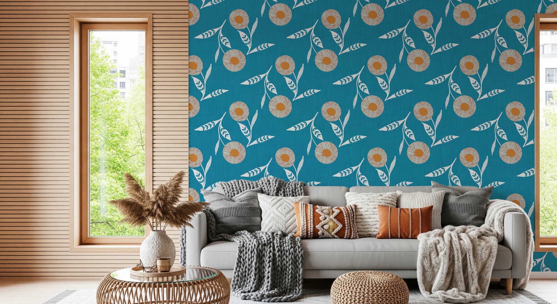 Embrace the simplicity and warmth of Scandinavian design with this charming floral wall covering. The "Cozy Scandi Flower Nordic Teal" design brings a touch of handcrafted elegance to your home. Featuring stylized flowers in a warm, earthy palette against a calming teal backdrop, this design evokes a sense of nature-inspired tranquility. The meticulously crafted details, reminiscent of folk art, add a unique textural element. Transform any room into a cozy haven with this wall décor that celebrates the beauty of botanical motifs in a modern, Nordic style. Perfect for creating a welcoming and serene atmosphere.