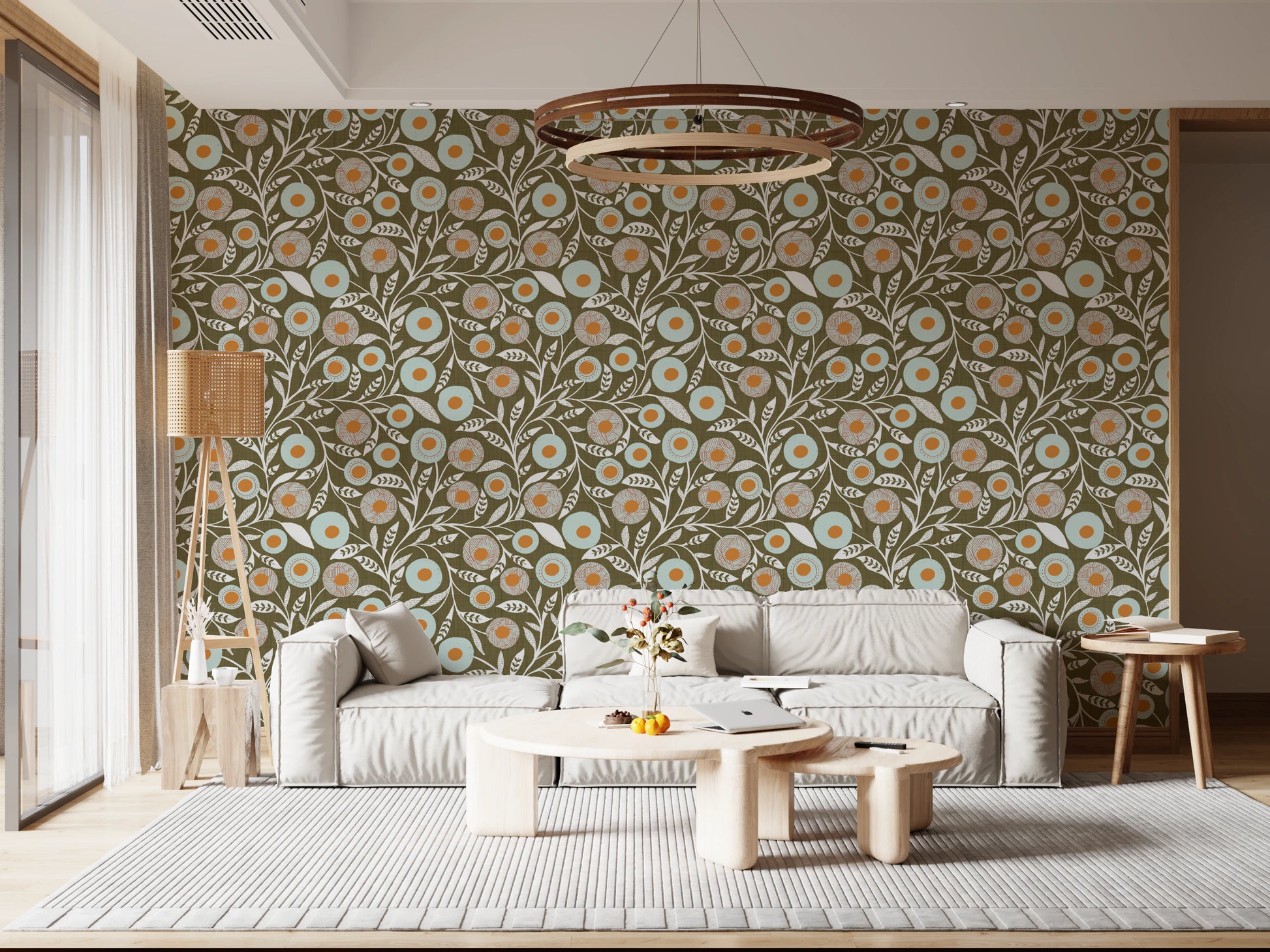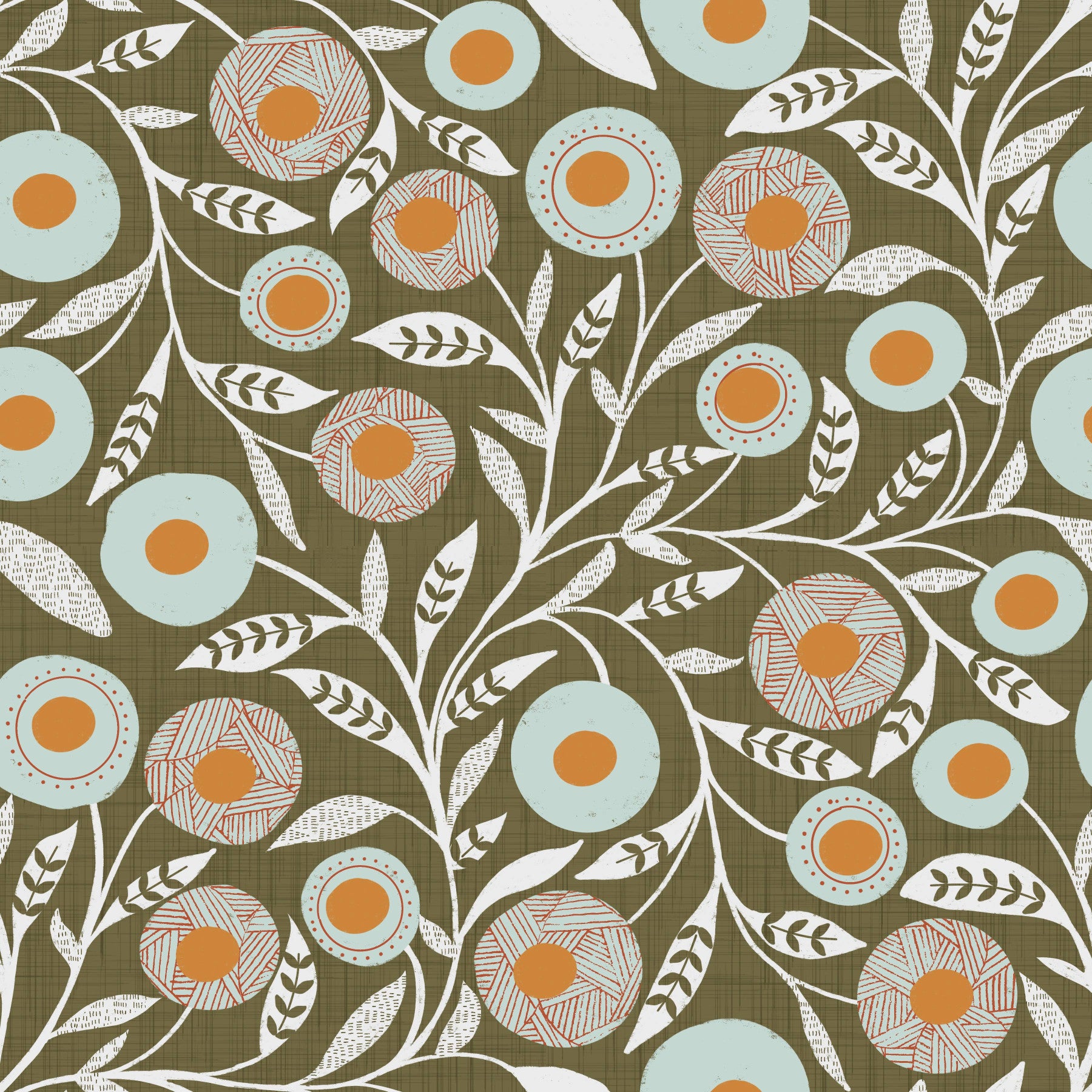 Cozy Scandi Folk Floral Earthy Olive - Craft Botanical Wallpaper⁠