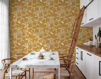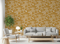 Cozy Scandi Folk Leaf Vine Honey Mustard - Craft Blender Wallpaper⁠
