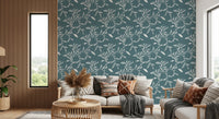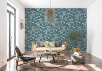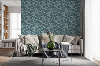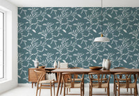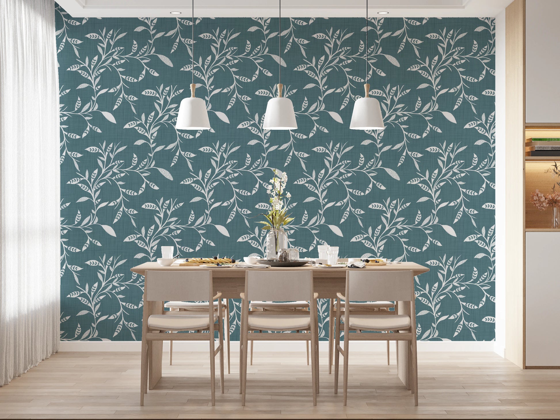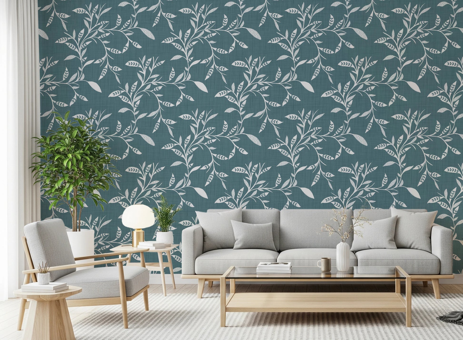 Cozy Scandi Folk Leaf Vine Nordic Blue Grey - Craft Blender Wallpaper⁠