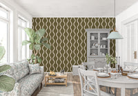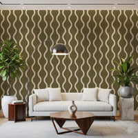 Embrace the soothing charm of Scandinavian design with our "Cozy Scandi Folk Wavy Stripe" wall covering. This delightful pattern features flowing, organic wavy stripes that evoke a sense of gentle movement and harmony. The earthy olive backdrop, subtly textured with a craft-inspired stripe effect, adds depth and visual interest, grounding the design in natural warmth. The off-white stripes provide a soft contrast, enhancing the relaxed and inviting atmosphere. Perfect for creating a serene and stylish space, this design brings a touch of understated elegance and Scandinavian hygge to any room. Let the "Cozy Scandi Folk Wavy Stripe" transform your walls into a haven of tranquility.