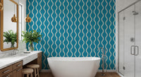 Embrace the warmth of Scandinavian design with this inviting wall covering. The 'Cozy Scandi Folk Wavy Stripe Nordic Teal' pattern blends handcrafted charm with modern simplicity. Gentle, flowing stripes in a soft off-white gracefully dance across a soothing teal backdrop, reminiscent of serene Nordic landscapes. The subtle, textured background adds a touch of artisanal flair, evoking the feeling of handwoven textiles and cozy, inviting spaces. Transform any room into a haven of tranquility and understated elegance with this uniquely crafted design, perfect for creating a warm and welcoming ambiance.