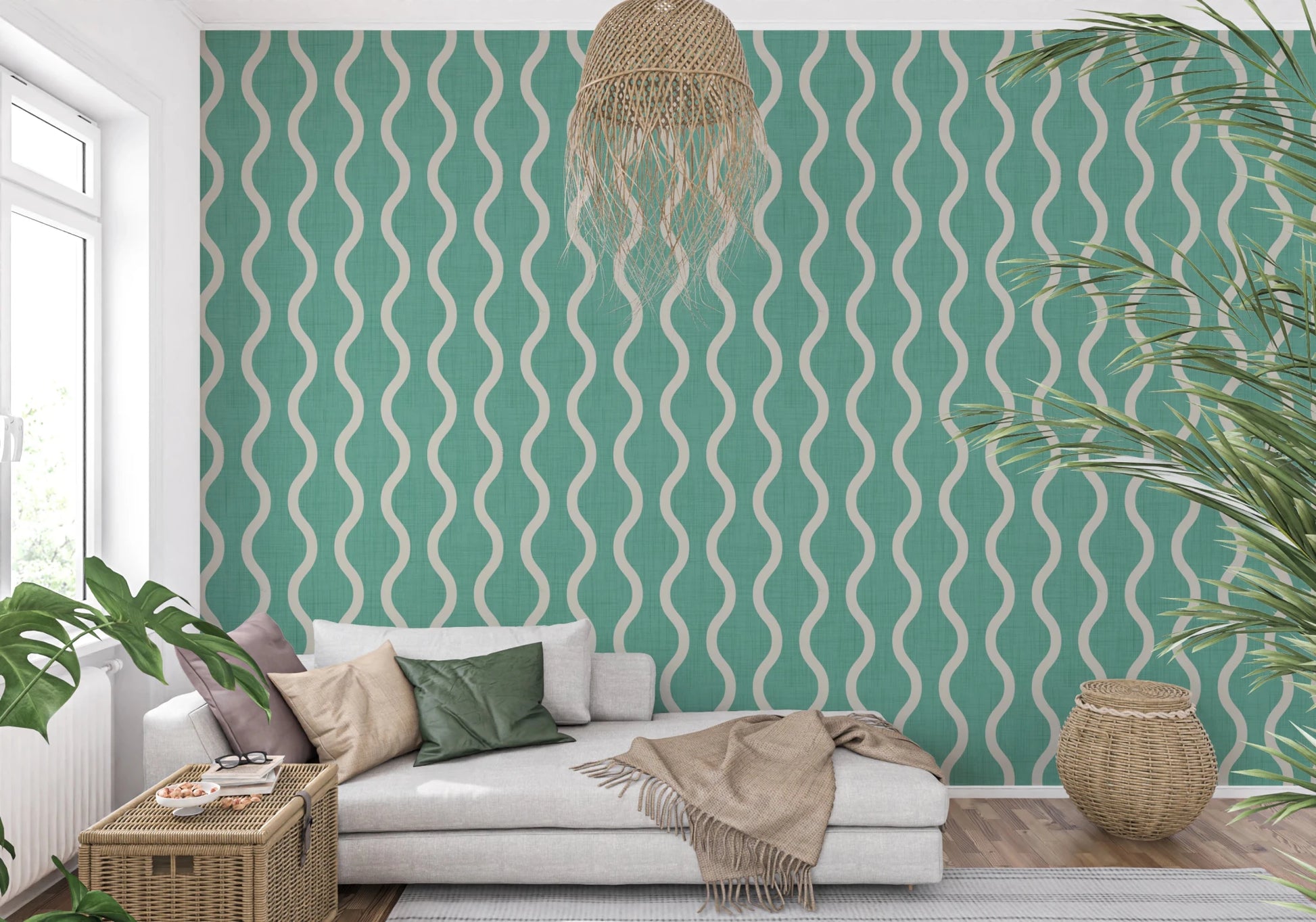 Cozy Scandi Folk Wavy Stripe Sage Mint - Craft Stripe Wallpaper⁠