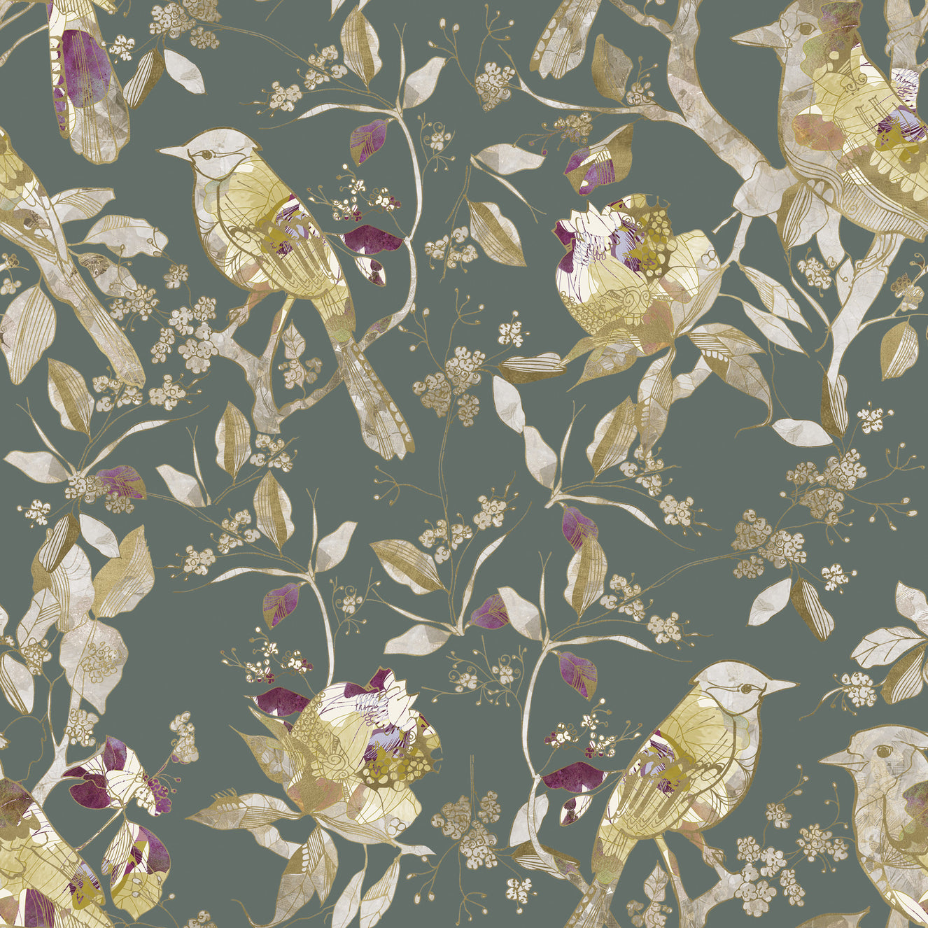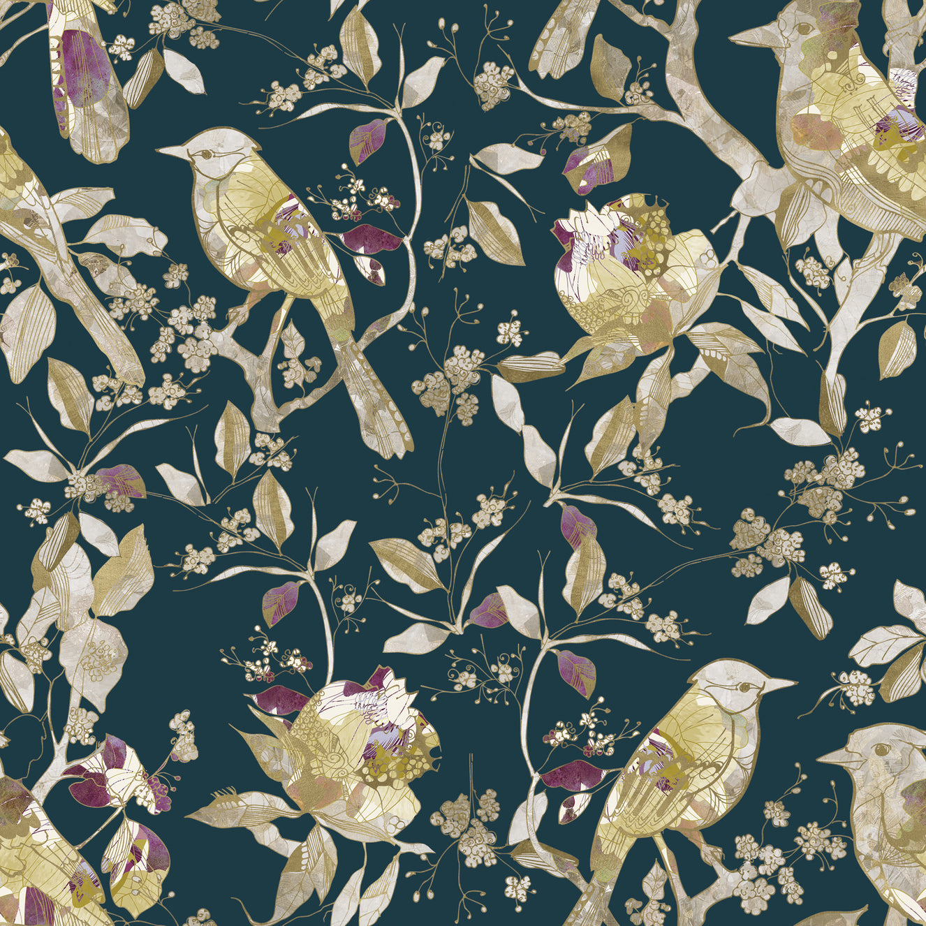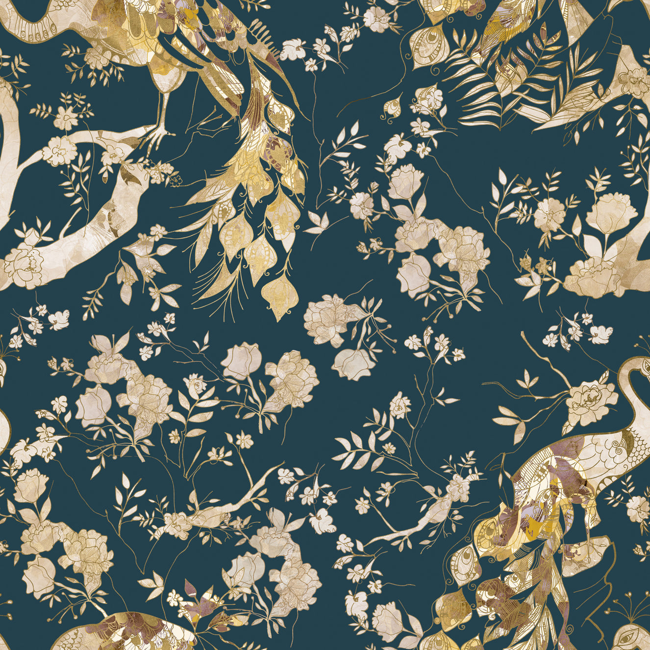 This wallpaper presents a solitary crane taking flight at sunrise, with misty mountains fading into the background. The design uses gold to accentuate the crane's wings and the reeds, adding a touch of refinement. Use this wallpaper for walls in areas where you want a relaxing atmosphere, like a bedroom or home office. The landscape imagery and gentle color palette create an elegant, peaceful backdrop that enhances interiors and brings a feeling of serenity.