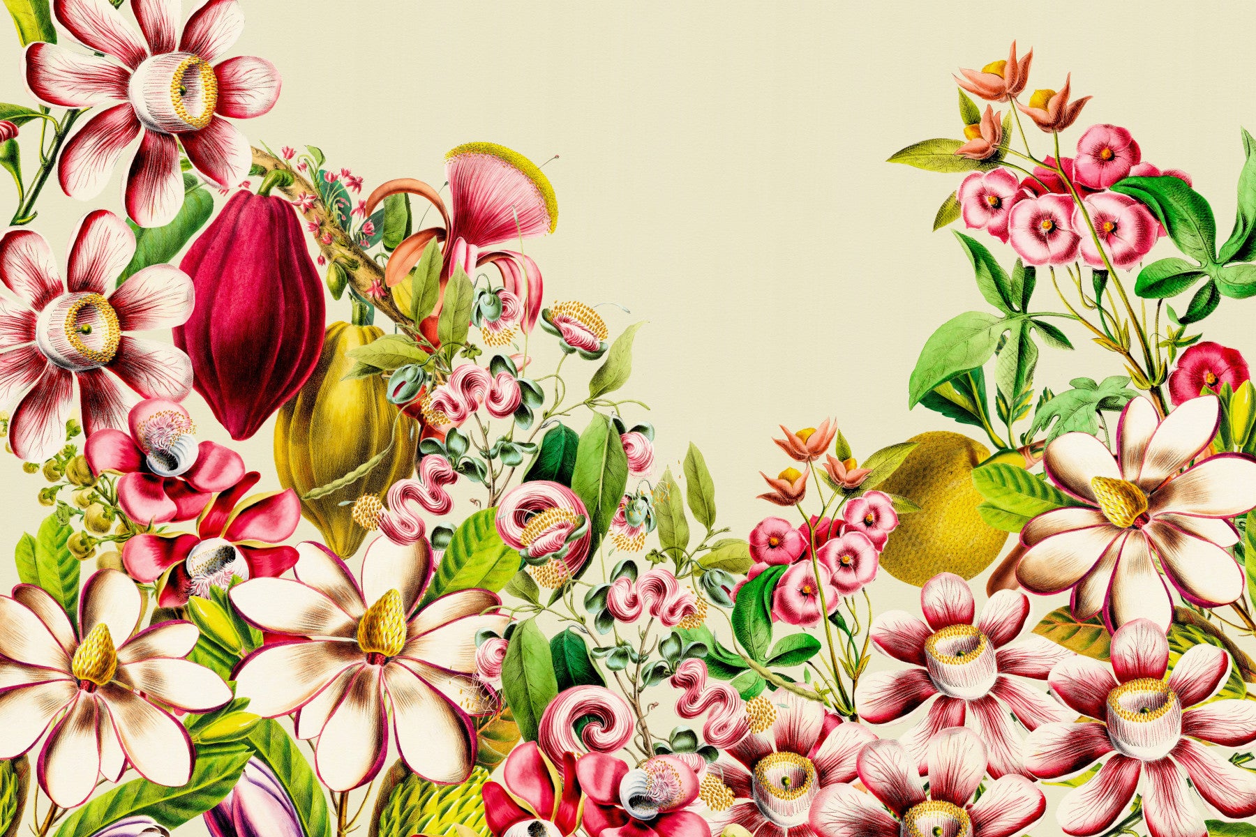 Beautiful Vintage Garden Mural in Crimson & Cream