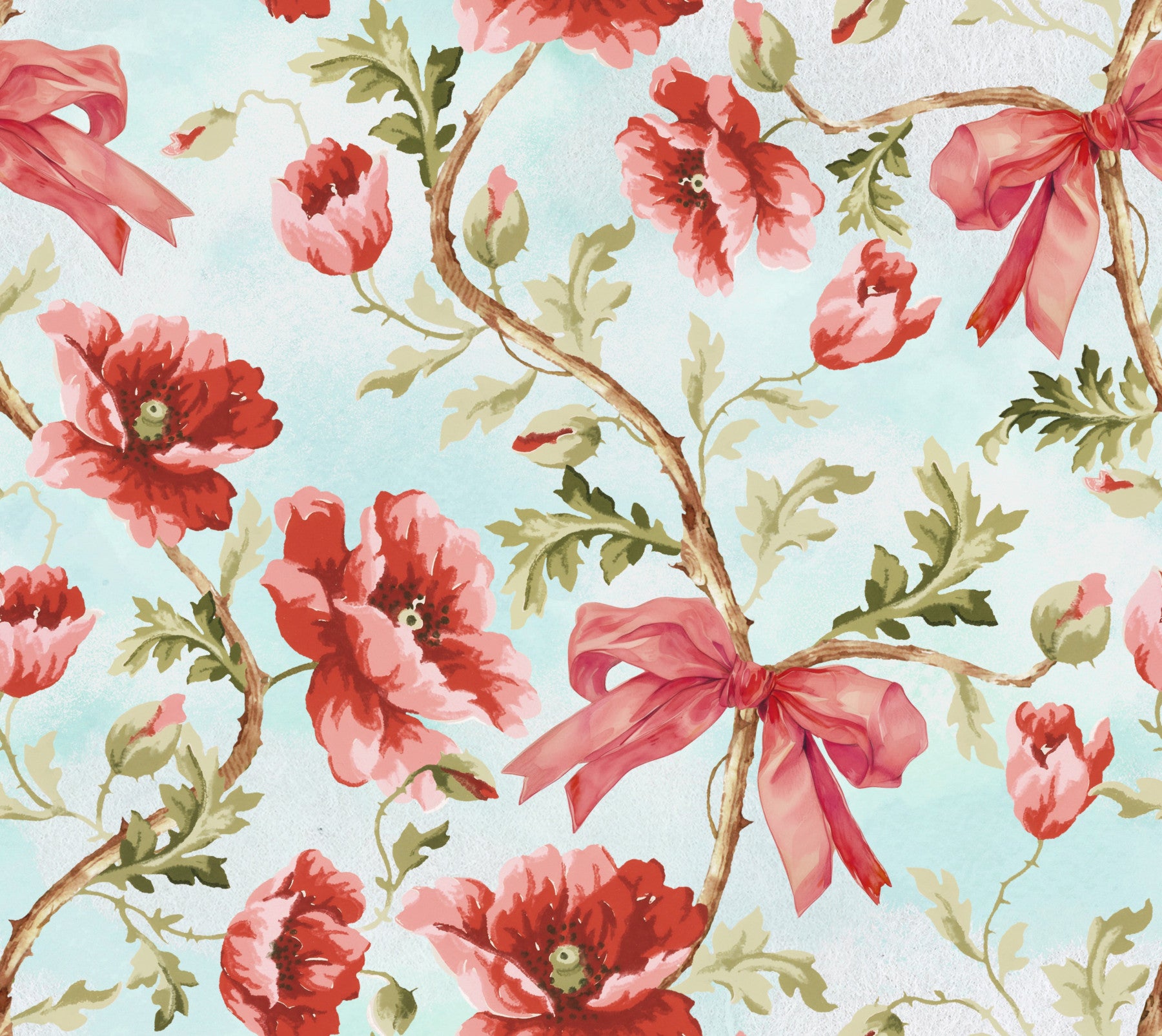 Crimson Preppy Ribbons & Poppies Wallpaper⁠