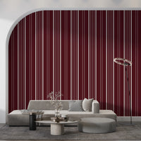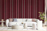 Enliven your walls with this sophisticated, striped design. Deep crimson and cream stripes bring a sense of depth and structure to any room. This vertical pattern creates the illusion of added height, making it ideal for smaller spaces or rooms with low ceilings. The blend of rich color and neutral tones makes it a seamless fit for classic, modern, or eclectic interiors. Elevate your living room, bedroom, or hallway with this striking, yet simple wallpaper for walls. Install it in a home office for a focused environment or a dining room for formal elegance.