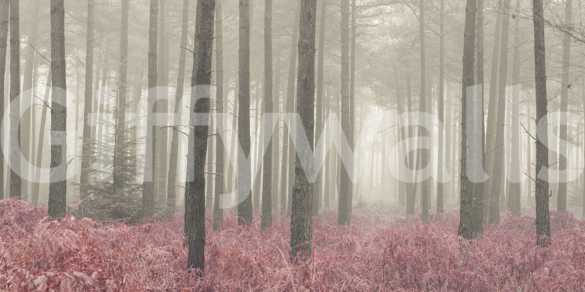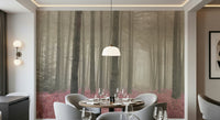 Transform your space with the 'Crimson Whisper Woods' design. This woodland scene brings a calm, natural feel into your home. Tall trees fade into a mist, while the ground bursts with crimson ferns. The soft, muted colors create a peaceful mood, perfect for bedrooms, living rooms, or hallways. The blend of nature and gentle hues makes this wallpaper for walls a wonderful choice. This design complements minimalist interiors and rustic decor, adding warmth and depth to any room. Create a relaxing haven with this natural landscape.
