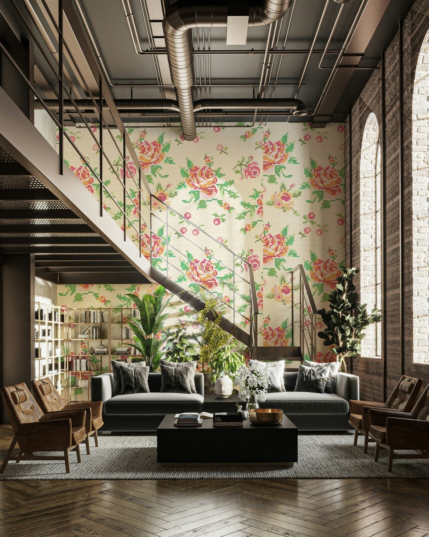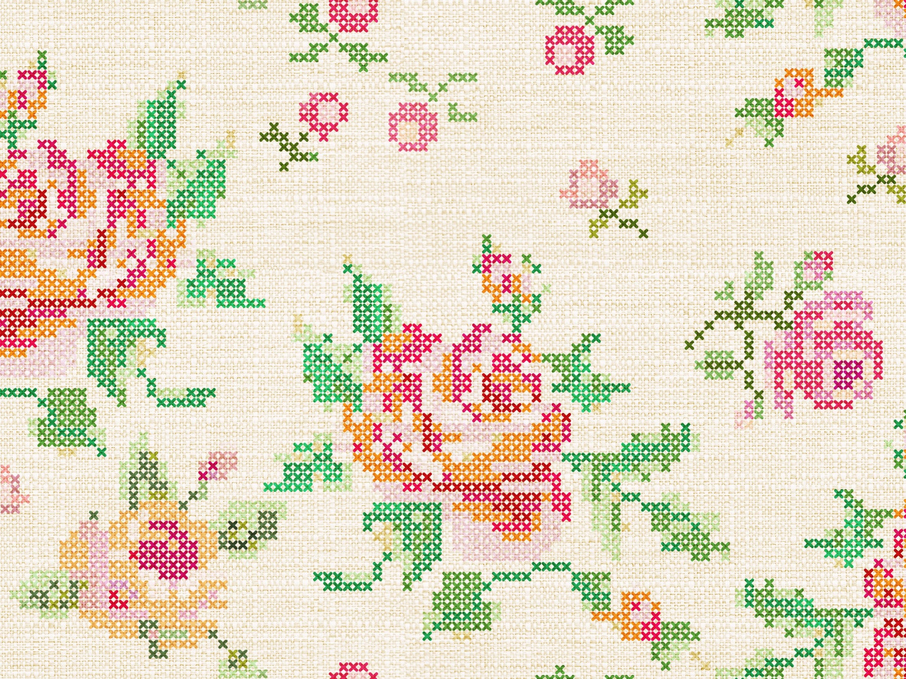 Cross-Stitch Blooms Wallpaper⁠